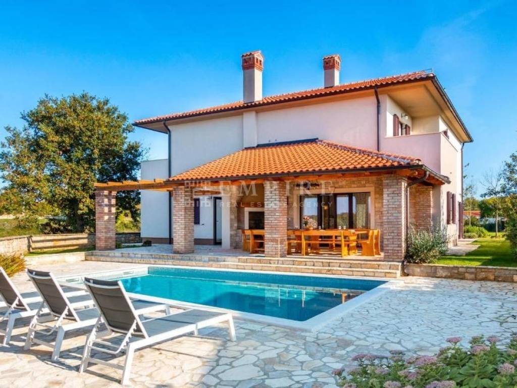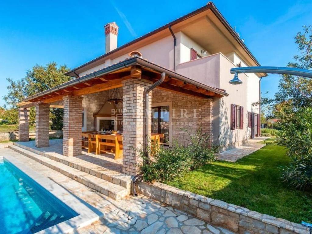 In the vicinity of Rovinj, a beautiful stone house with a pool and large yard. The house was built in 2019 and has been successfully rented for tourist stays since then.