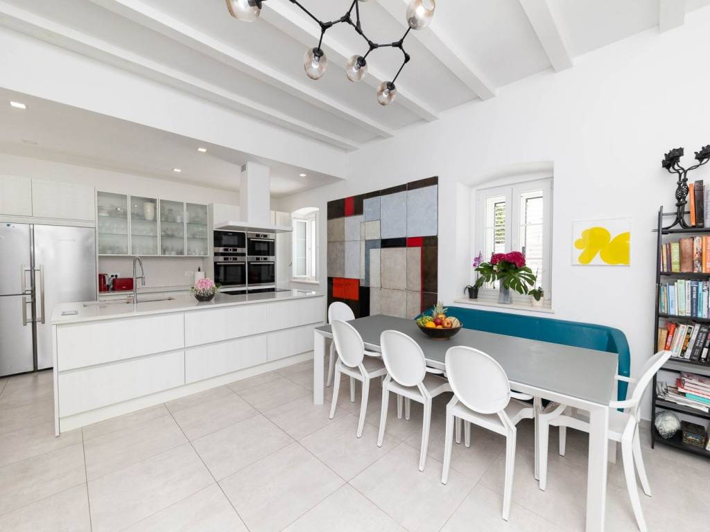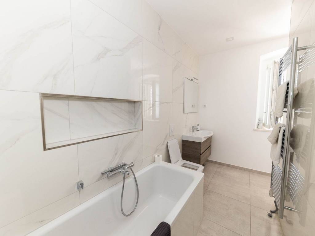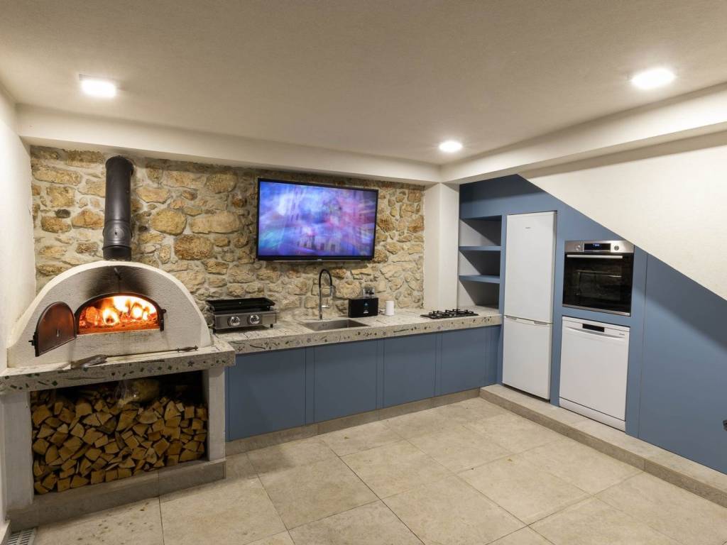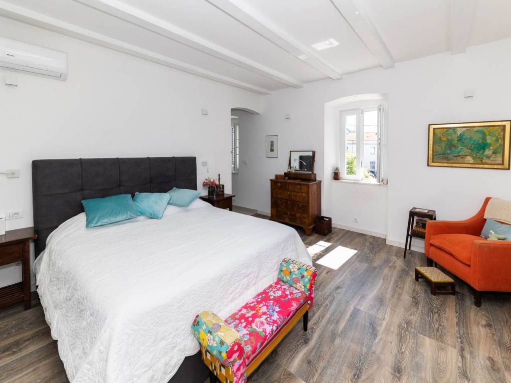 BRIBIR - Three-story villa with a pool and a view of the sea. A villa built at the beginning of the 20th century, completely renovated and modernly equipped, is for sale. It consists of three floors - ground floor, first floor and high attic. On the ground floor there is a living room, a kitchen with a dining room, a study with its own bathroom, a toilet and a storage room. In the central part of the ground floor there is a staircase that leads up to the first floor and the courtyard. On the first floor there are three bedrooms with separate bathrooms, and the master bedroom has a walk-in closet. In the yard we have a swimming pool with a sunbed, and above the summer kitchen with a bread oven there is an additional terrace. The yard is fenced and hidden from view. From the first floor, we climb the stairs to the high attic where there are two bedrooms and one bathroom. The villa also has its own garage and it is possible to park in the public area in front of and around it. The property is located in the old center, surrounded by the historical heritage of Vinodol, with a view of the sea and the old town. All amenities are within 300 meters. The location is ideal for living or vacationing and has potential for tourist rental.