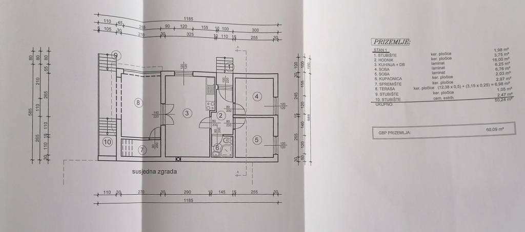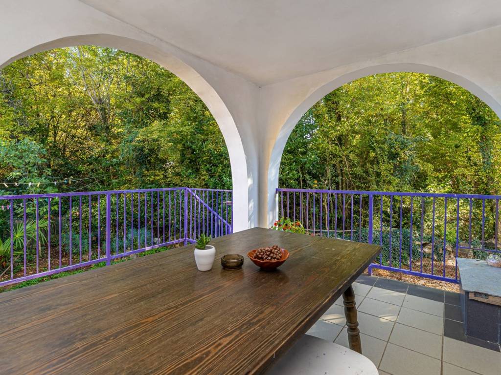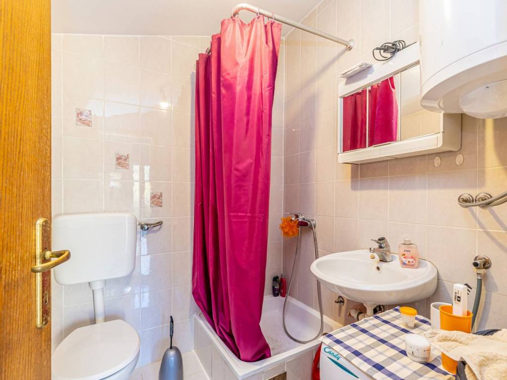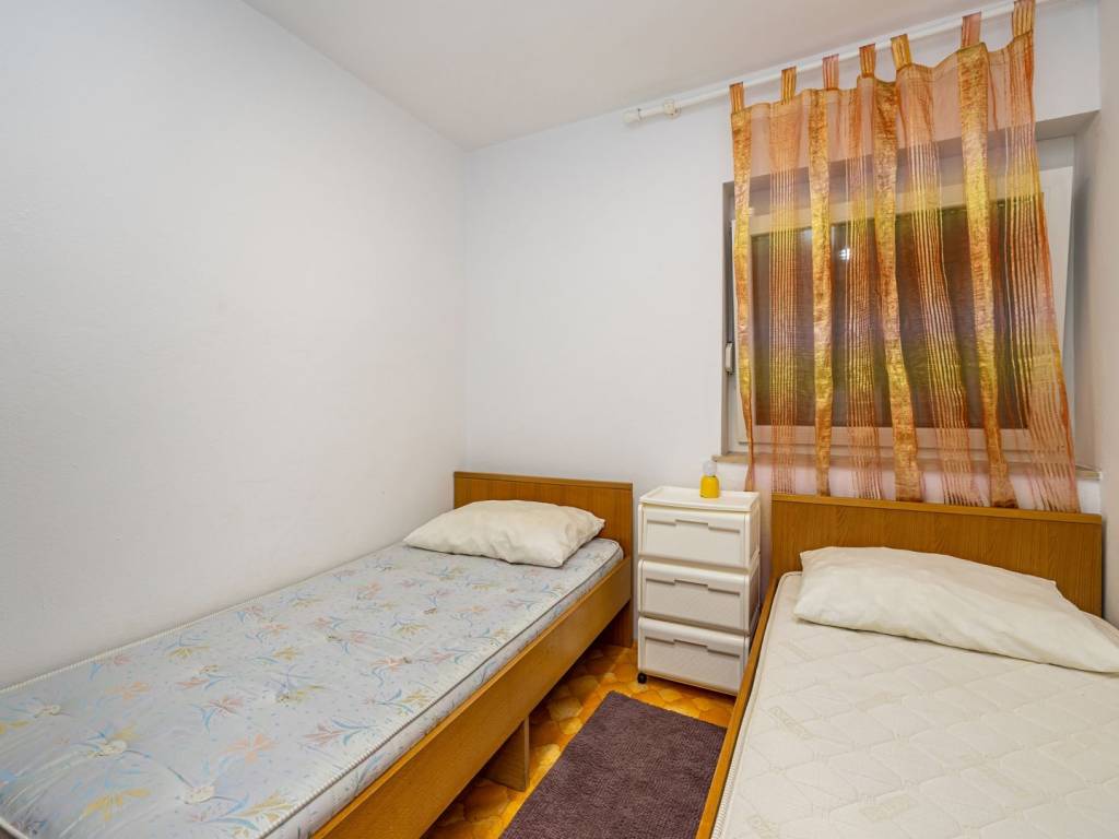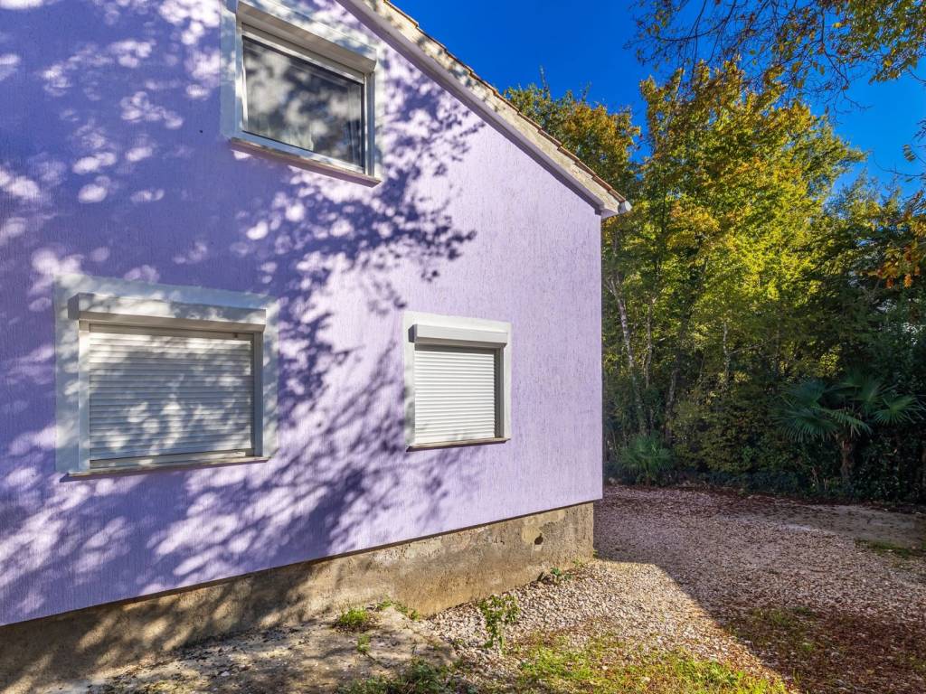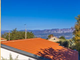 A semi-detached house with two apartments is for sale on the island of Krk, in a quiet location, surrounded by greenery. On the ground floor there is an apartment with two bedrooms, bathroom, hallway, open space kitchen and living room, and a large covered terrace and storage. It is connected by an external staircase to the second floor, which consists of a kitchen, coupon room, bedroom and storage space. It also has a large uncovered terrace with a view of the sea. The house has a total of 230 m2 garden.