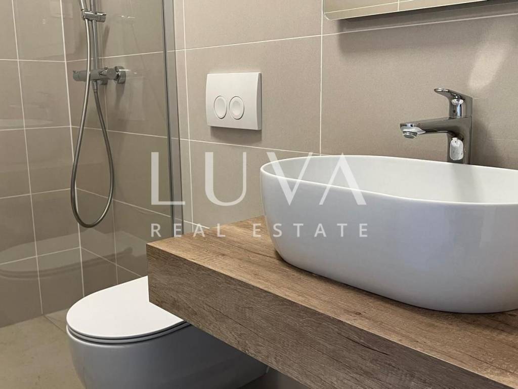 Special attention has been paid to quality and comfort: high ceilings (280 – 300 cm), aluminum joinery with triple-glass windows and shutters, high-quality Italian ceramic tiles, shutters on the balconies, Daikin multisplit heating and cooling systems in all rooms, solar power plant with batteries for electricity storage and two fireplaces. The house also has a water tank with a capacity of 20 m³, and the energy certificate A+ confirms high energy efficiency.