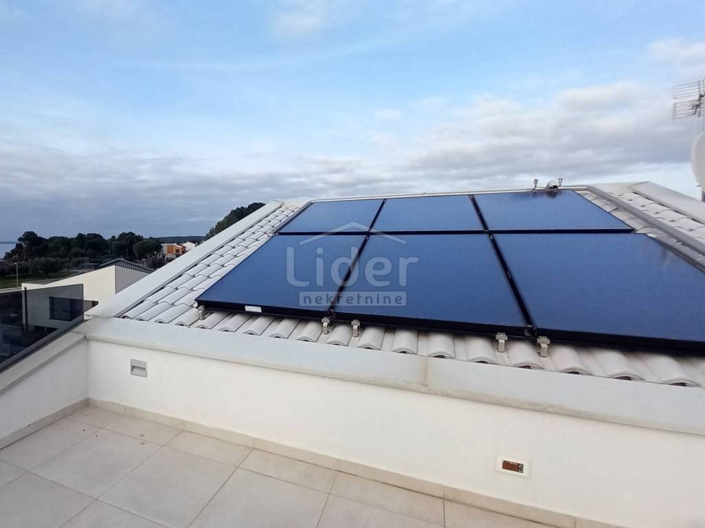 Upstairs there are four bedrooms, each with its own bathroom. From the first floor, stairs lead to a spacious roof terrace with an unobstructed view of the sea and the Brijuni Islands. There is another room with a sloping roof that can become an additional bedroom or a playroom and the like.
