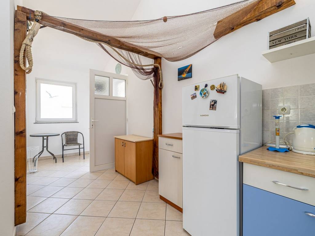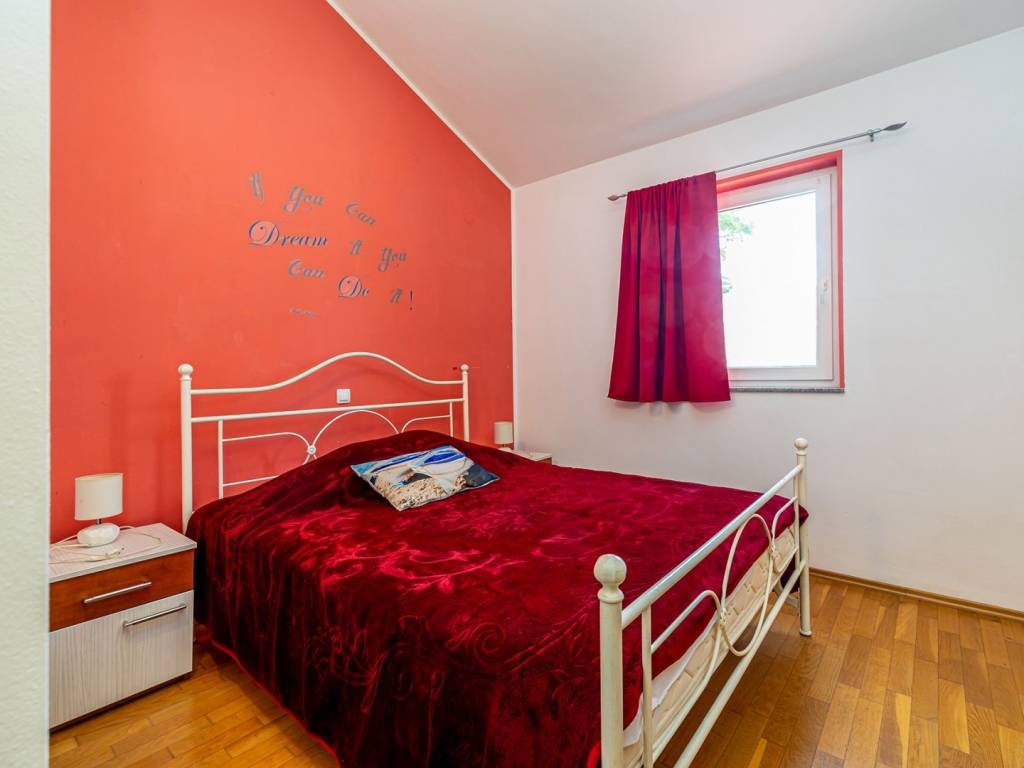 In a quiet part of Šilo on the island of Krk, just 500 meters from the sea, is this charming first-floor apartment with a total area of 47 m2. Located in a smaller residential unit with a separate entrance, the apartment offers peace, privacy and a functional layout - perfect for a vacation or tourist rental. The interior of the apartment includes a hallway, an open living room connected to the kitchen, a comfortable bedroom and a bathroom. High ceilings create an additional feeling of spaciousness and allow for the addition of a gallery - ideal for an extra bed, a work area or storage space. The apartment is being sold fully furnished, which allows the new owner to move in immediately without additional investment. The apartment also comes with its own parking space, which is an exceptional convenience in the summer months when the demand for parking is high. The location is excellent - there are shops, restaurants and all necessary amenities in the immediate vicinity, and the sea is only a few minutes' walk away. This property is an ideal opportunity for those looking for a functional, finished apartment in an attractive location with potential for expansion.