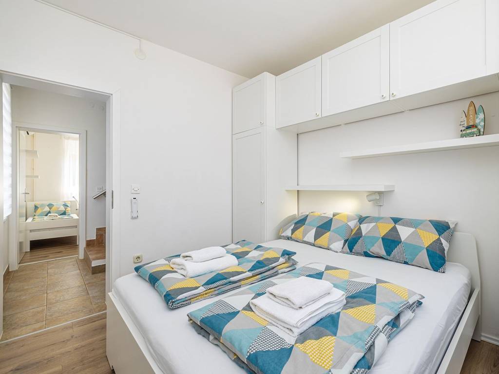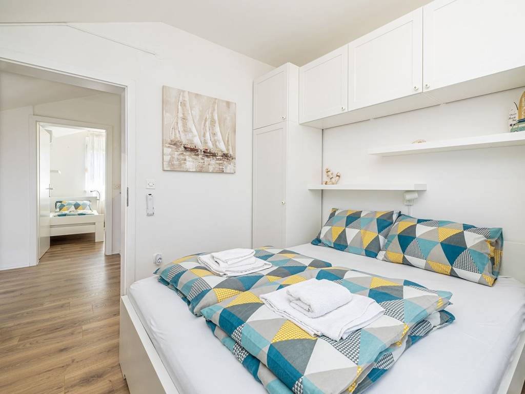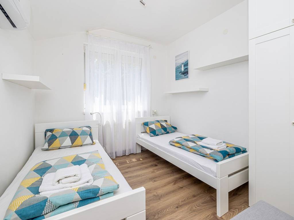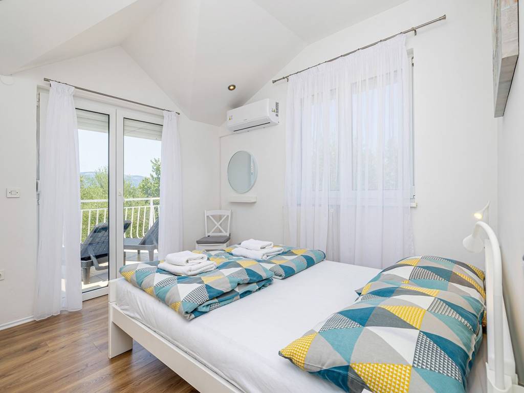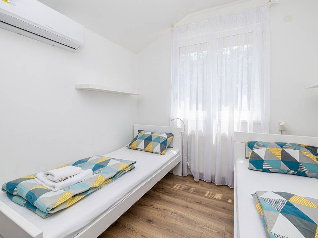 In a quiet and green location near the town of Krk, this detached family house with a living area of 200 m² is located, which with its amenities and layout provides an ideal space for a comfortable and functional life. The 440 m² garden is carefully landscaped, with a swimming pool, sundeck, outdoor shower, covered barbecue and storage room, and a small olive grove - a symbol of Mediterranean tradition and longevity, which creates an authentic atmosphere - is of particular value. The ground floor of the house consists of a hallway, a modern bathroom with shower and toilet, and a kitchen with a dining room. The ground floor provides access to the basement, which houses an entertainment room and storage space. There are two bedrooms on the first half-floor, while on the first floor there is another bedroom, living room, bathroom and balcony. The second half-floor includes two additional bedrooms. One of the balconies offers a sea view, although not panoramic, which still gives the space a dose of Mediterranean atmosphere. The house is equipped with gas central heating, which allows for a pleasant stay throughout the year. Parking for three cars is provided in the yard, which completes the practical aspect of this property. Thanks to its quiet location, well-designed layout and elements of local tradition, this house offers a pleasant living space near the sea - a harmony of nature and functionality.