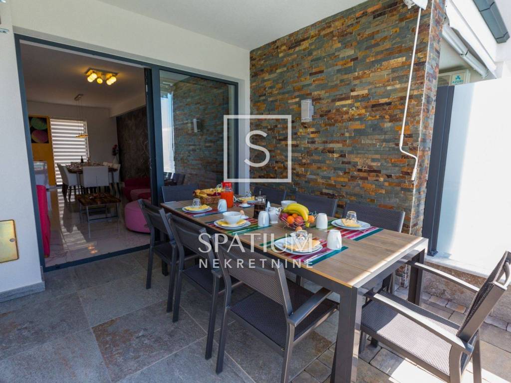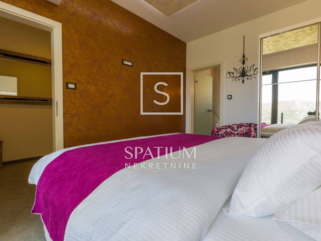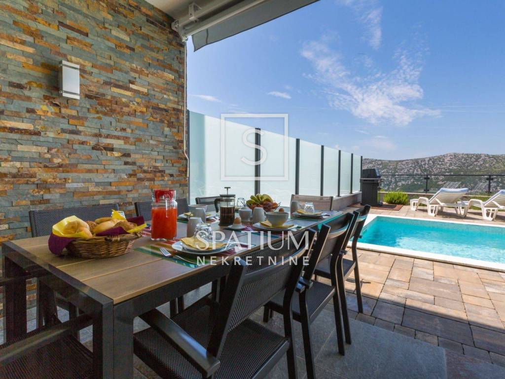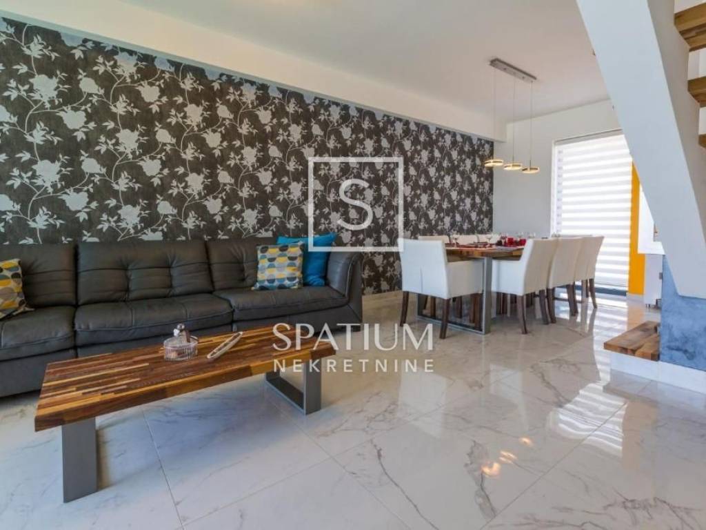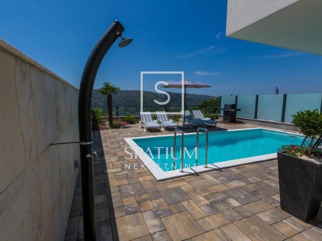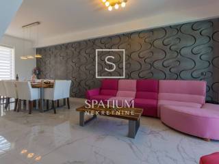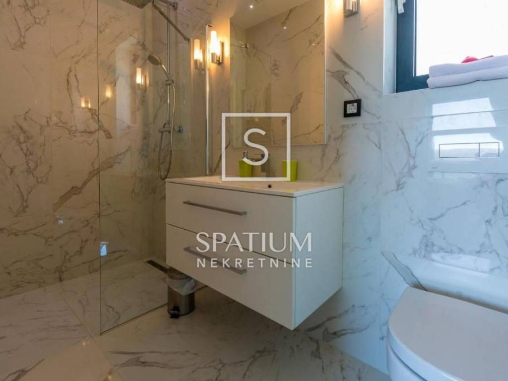 GRIŽANE, We are offering a unique urban villa in the hinterland of 220 m2. It contains two two-story apartments, each of them on the ground floor has a kitchen-dining area connected to a large living room from which there is access to a terrace with a swimming pool. There is also one bedroom and a bathroom on the ground floor. Each of the apartments on the first floor has three spacious bedrooms with their own bathrooms. Two rooms have balconies, while the third occupies a place outside the basic dimensions of the house, which gives it a spectacular view of the sea and the surrounding area. Each apartment also has a storage room and three parking spaces. The building is built of high-quality materials, the carpentry is of top quality, which guarantees durability and high energy efficiency. The quality of construction meets the highest standards of the profession. It has a modern design, with large glass surfaces. It is equipped with video surveillance and alarm systems, and exudes the luxury and comfort of a 602 m2 garden, and is located in the hinterland, only a ten-minute drive from the town of Crikvenica. The location and comfort of this villa provide an ideal place for a peaceful life, as well as for the purpose of tourist rental.