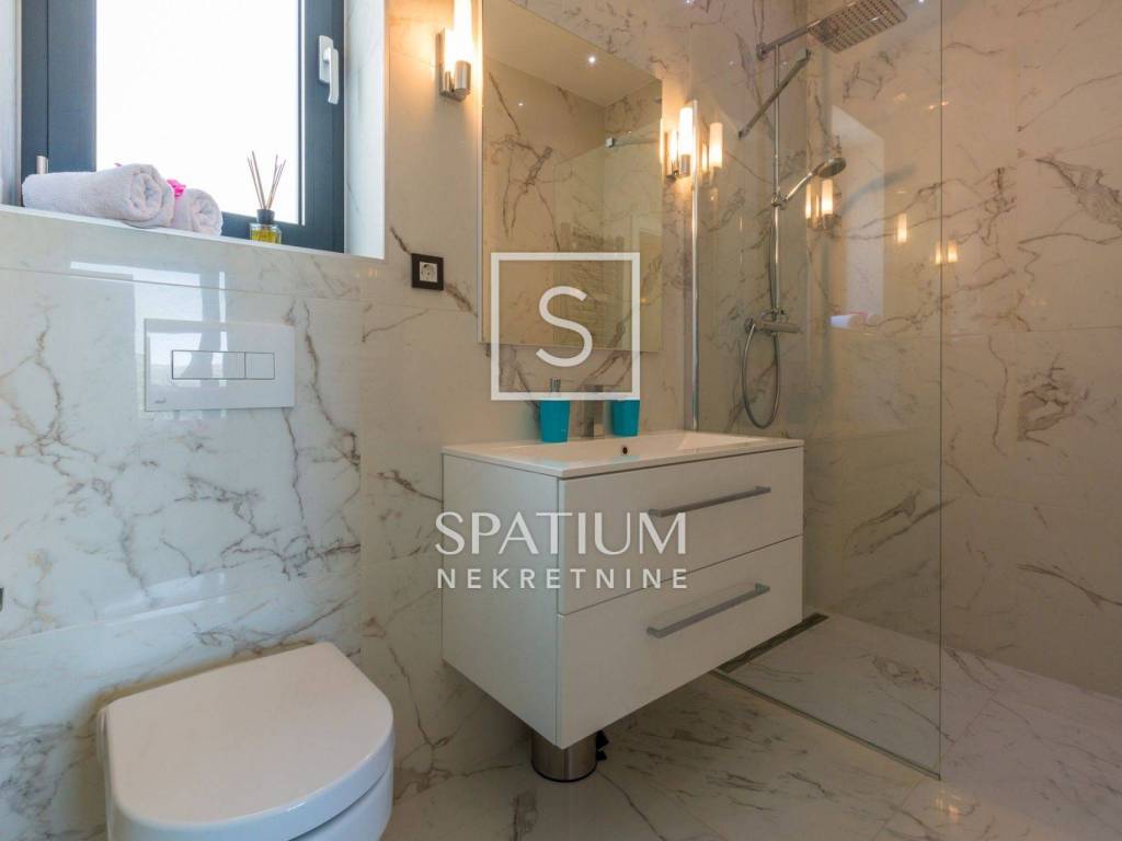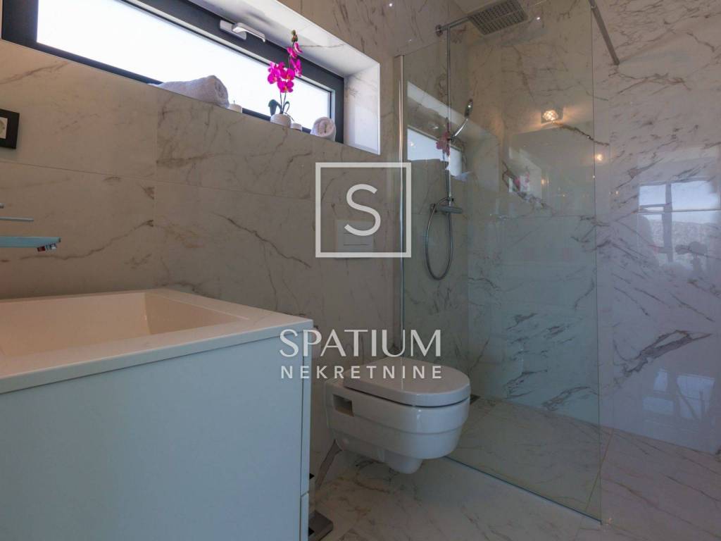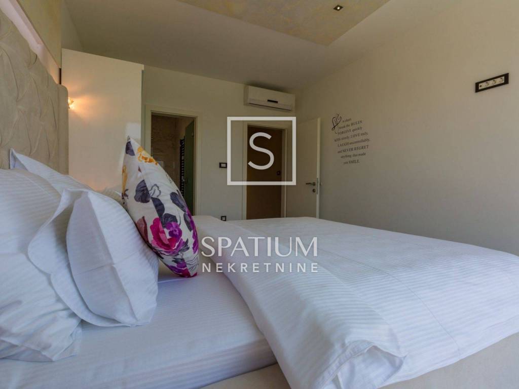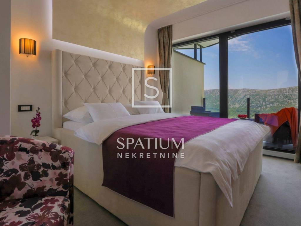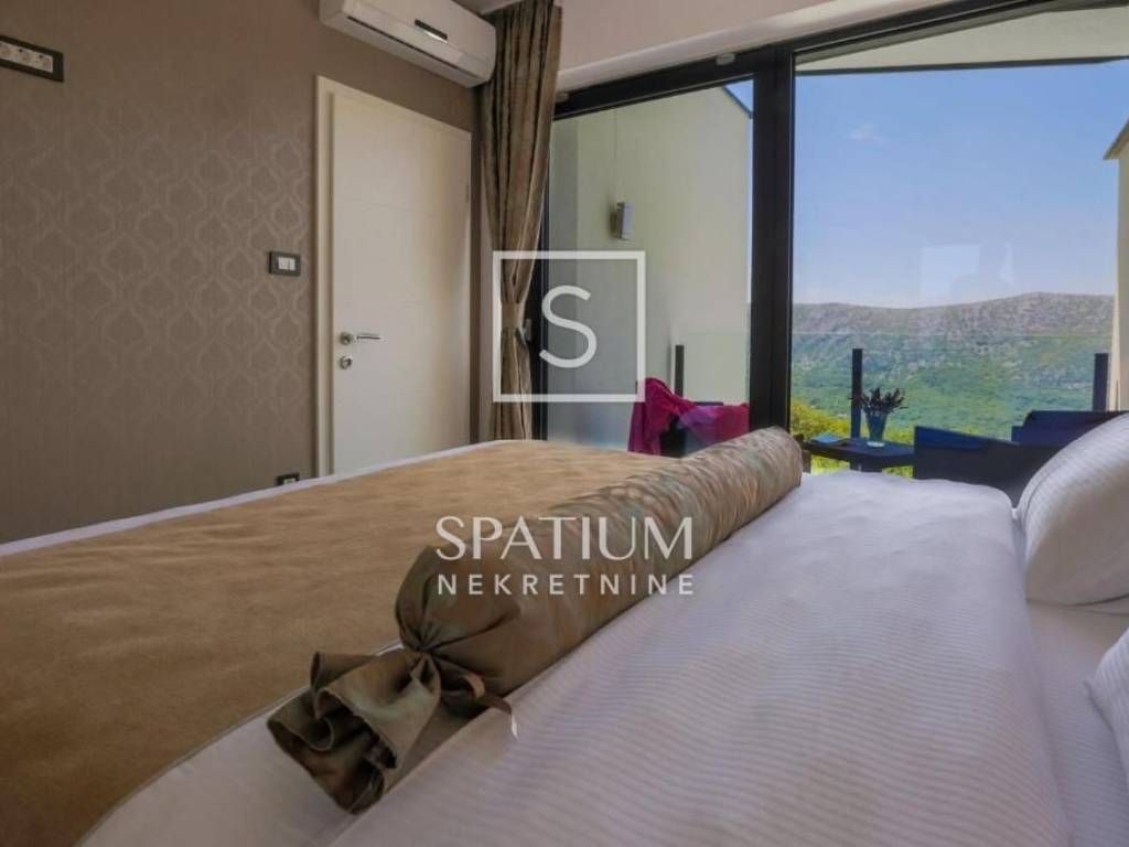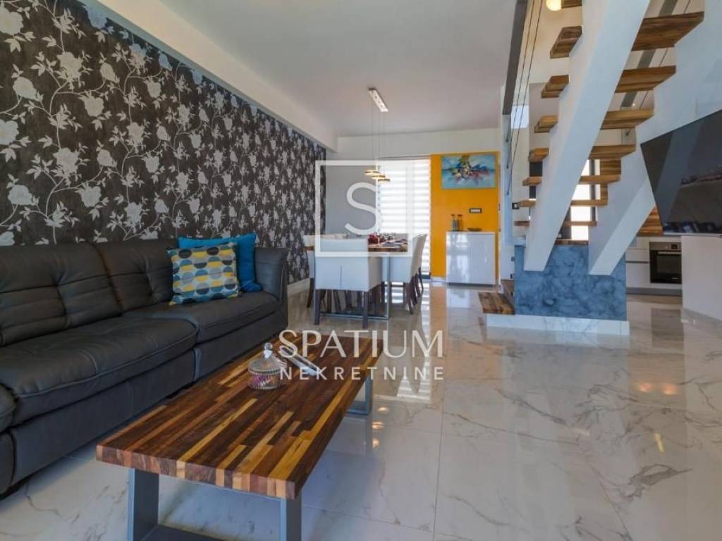 GRIŽANE, We are offering a unique urban villa in the hinterland of 220 m2. It contains two two-story apartments, each of them on the ground floor has a kitchen-dining area connected to a large living room from which there is access to a terrace with a swimming pool. There is also one bedroom and a bathroom on the ground floor. Each of the apartments on the first floor has three spacious bedrooms with their own bathrooms. Two rooms have balconies, while the third occupies a place outside the basic dimensions of the house, which gives it a spectacular view of the sea and the surrounding area. Each apartment also has a storage room and three parking spaces. The building is built of high-quality materials, the carpentry is of top quality, which guarantees durability and high energy efficiency. The quality of construction meets the highest standards of the profession. It has a modern design, with large glass surfaces. It is equipped with video surveillance and alarm systems, and exudes the luxury and comfort of a 602 m2 garden, and is located in the hinterland, only a ten-minute drive from the town of Crikvenica. The location and comfort of this villa provide an ideal place for a peaceful life, as well as for the purpose of tourist rental.