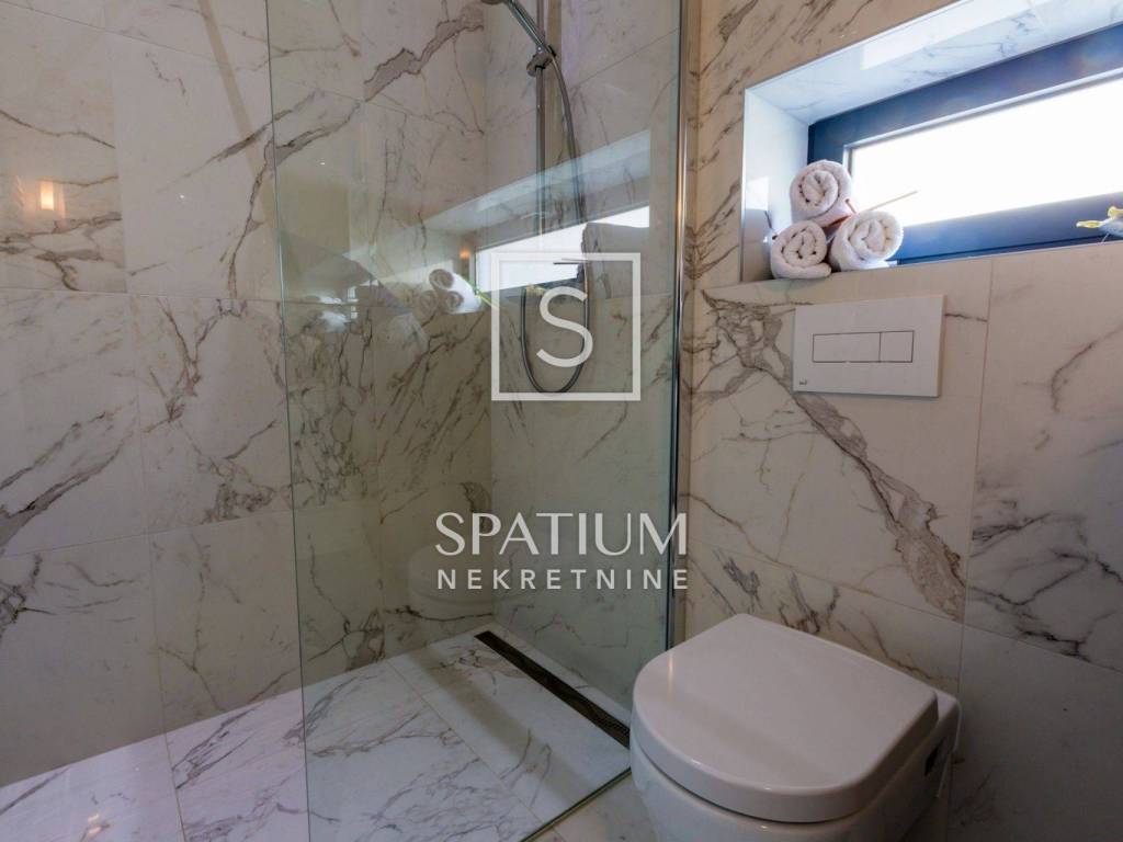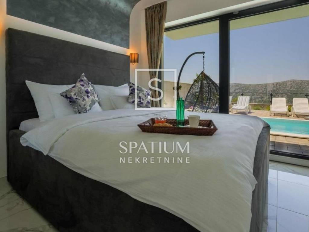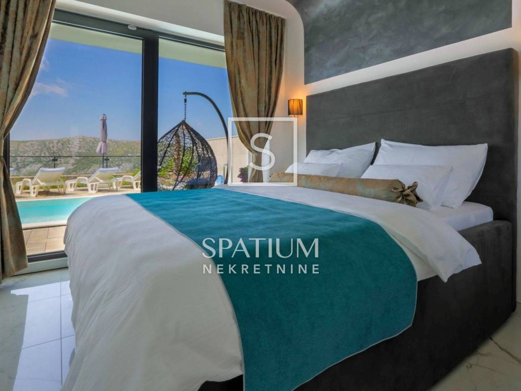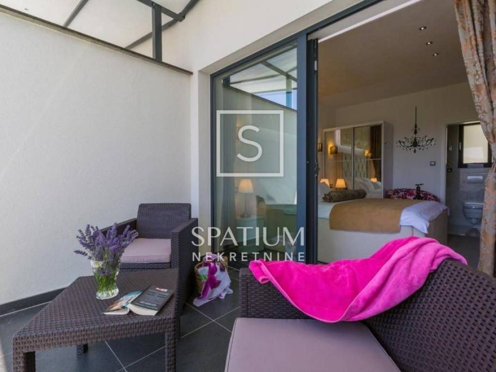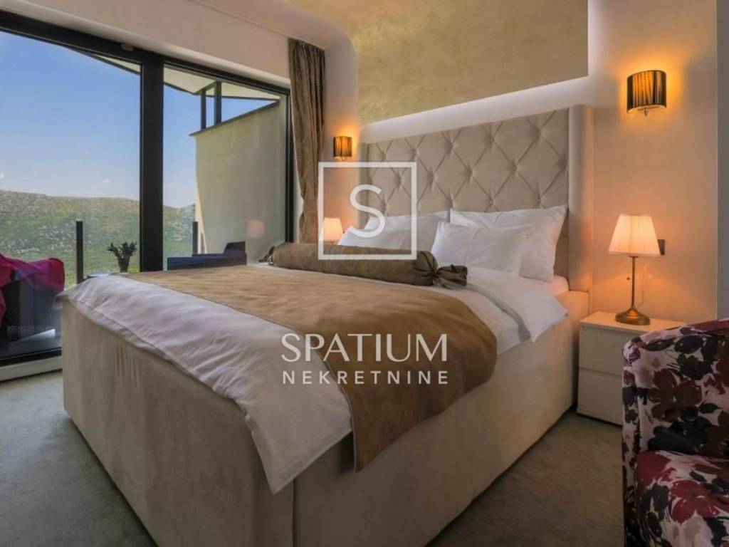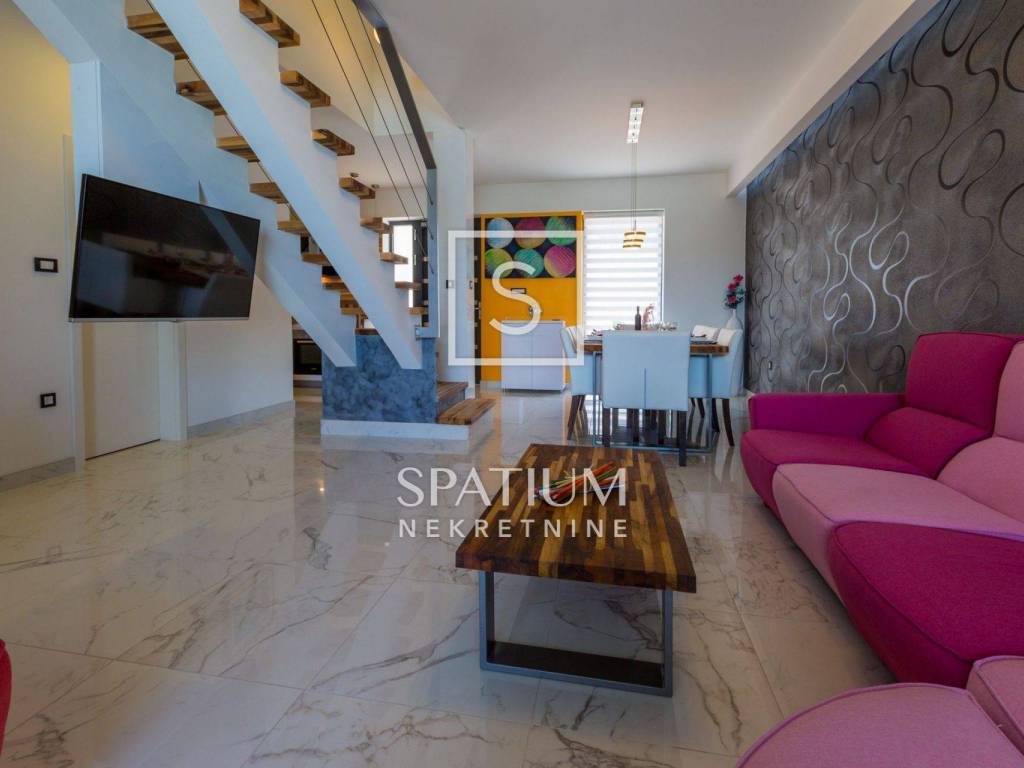 GRIŽANE, We are offering a unique urban villa in the hinterland of 220 m2. It contains two two-story apartments, each of them on the ground floor has a kitchen-dining area connected to a large living room from which there is access to a terrace with a swimming pool. There is also one bedroom and a bathroom on the ground floor. Each of the apartments on the first floor has three spacious bedrooms with their own bathrooms. Two rooms have balconies, while the third occupies a place outside the basic dimensions of the house, which gives it a spectacular view of the sea and the surrounding area. Each apartment also has a storage room and three parking spaces. The building is built of high-quality materials, the carpentry is of top quality, which guarantees durability and high energy efficiency. The quality of construction meets the highest standards of the profession. It has a modern design, with large glass surfaces. It is equipped with video surveillance and alarm systems, and exudes the luxury and comfort of a 602 m2 garden, and is located in the hinterland, only a ten-minute drive from the town of Crikvenica. The location and comfort of this villa provide an ideal place for a peaceful life, as well as for the purpose of tourist rental.