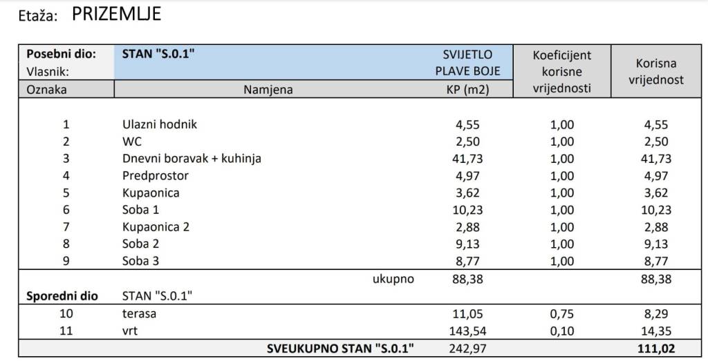 Apartment 0.1: In a quiet, side street of the prestigious Zagreb neighborhood of Jordanovac, this elegant apartment is located on the ground floor of a top-quality new building with a private garden and all the characteristics of a modern, comfortable and aesthetically designed home. The building consists of only nine apartments, with an elevator and an underground garage, and exudes exclusivity and privacy. The apartment consists of an airy living room with a kitchen and dining room, three bedrooms, two bathrooms, a guest toilet and a functional entrance area with a wardrobe. The master bedroom has its own bathroom with a walk-in shower, while the main bathroom has a bathtub, ideal for relaxation. The space is full of daylight thanks to large glass openings and an orientation that ensures warmth and freshness throughout the day. The living area leads to a covered terrace, and then to a private garden, which can be arranged as desired: barbecue, plants such as laurel, cherry and hedge, and artificial grass as an elegant and practical maintenance solution. A perfect place to stay outdoors, without having to compromise between aesthetics and functionality. The price of the apartment does not include a garage parking space - the purchase of at least one garage space is mandatory, and it is possible to purchase two. Garage parking spaces are calculated at a coefficient of 0.50, depending on the size and location, and access to the apartment is provided directly from the garage by elevator. The building has an elevator, and the ground floor is elevated because the garage is located below - which further increases privacy and security. The building is located right next to a kindergarten, and in the immediate vicinity are an elementary school, the prestigious MIOC, Maksimirska šuma, and Rebro, Merkur and Petrova Hospital. The entire environment exudes peace, security and greenery. The building is in the VAT system, so the buyer does not pay real estate transfer tax, which additionally makes this property an extremely attractive opportunity to purchase. The buyer does not pay real estate transfer tax, which additionally makes this property an extremely attractive opportunity to purchase. Key advantages: Private garden (138 m²) + covered balcony, Three bedrooms + two bathrooms + guest toilet, Underfloor heating, Grohe sanitary ware, ceiling air conditioning, Elevator, high ground floor, direct access from the garage, Possibility to purchase an additional garage space, Close to kindergarten, school, MIOC, forest and hospital, No real estate transfer tax