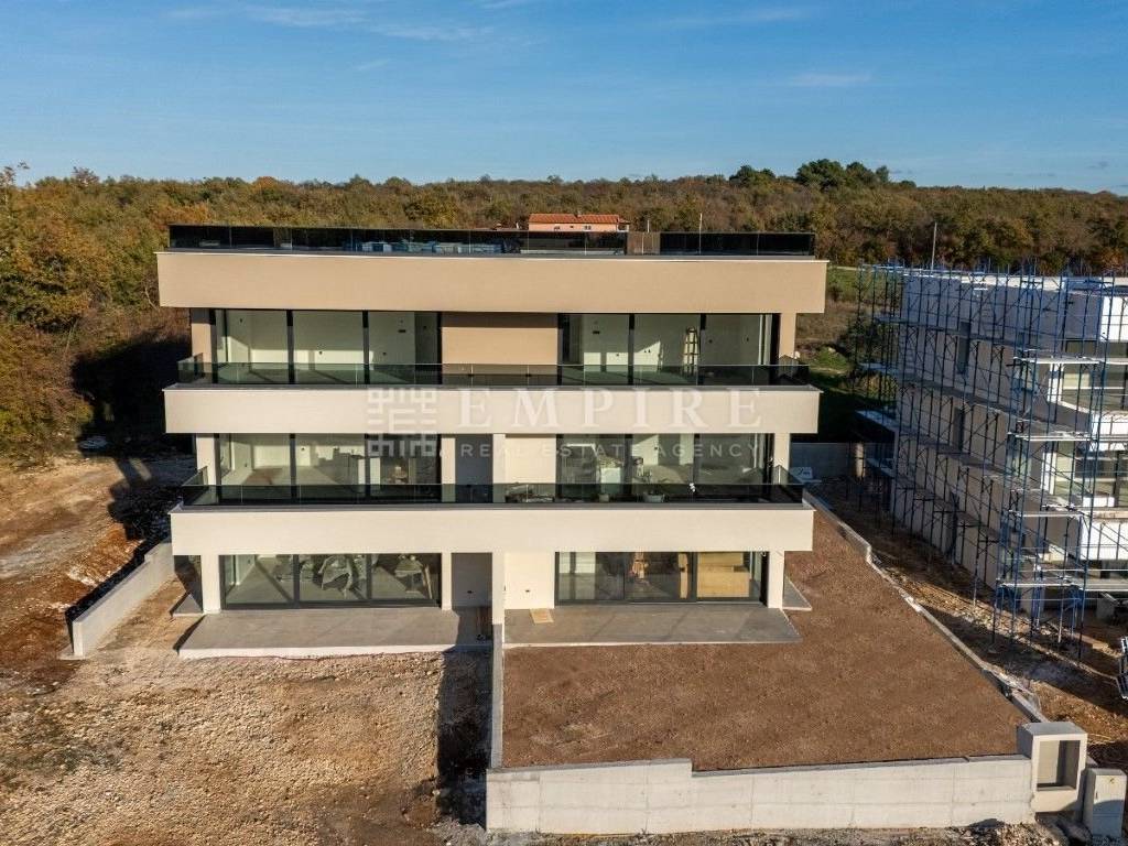 Imagine life in a luxurious penthouse that welcomes you with open arms upon every arrival! This impressive property, located at the entrance of Poreč and just 2000 meters from the vibrant city center, perfectly blends comfort and sophistication.