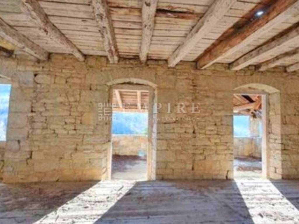 The first house, in better condition, spans the ground floor, first, and second floors, featuring a beautiful large terrace with views of the countryside on the first floor.