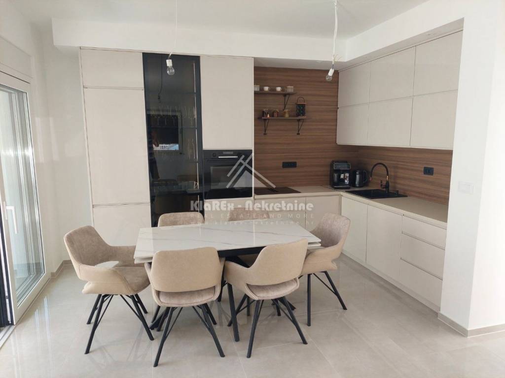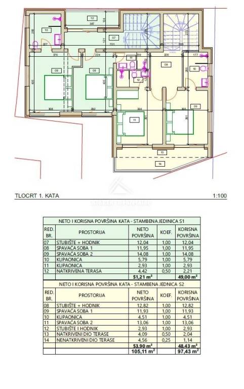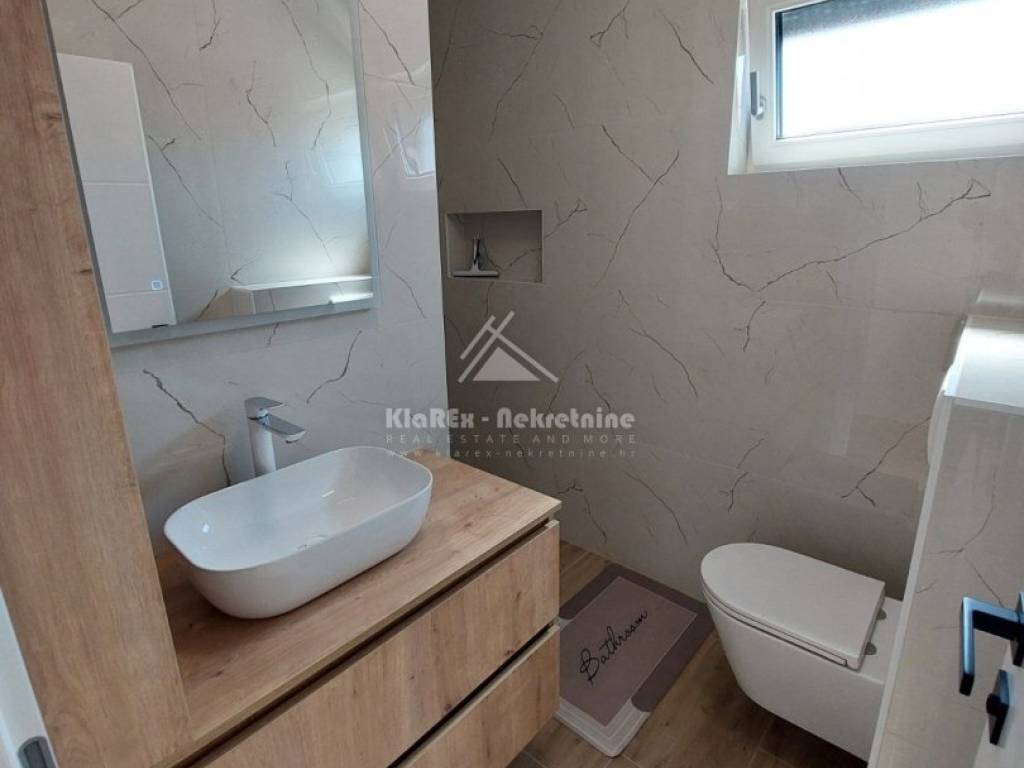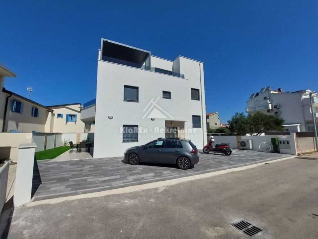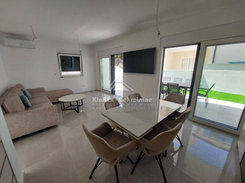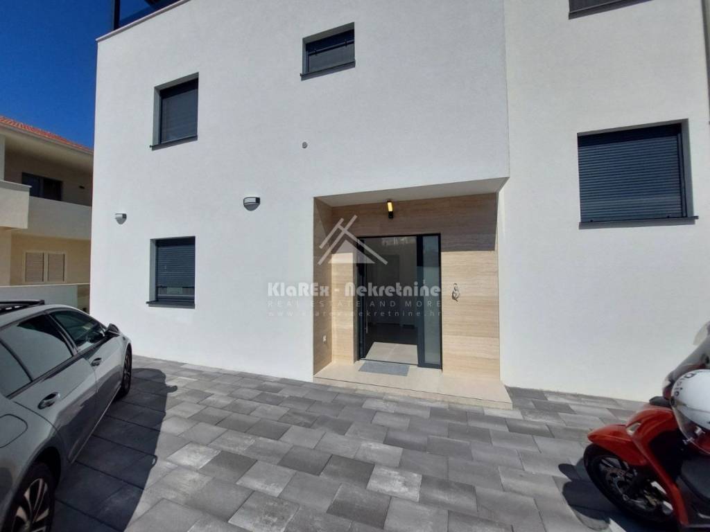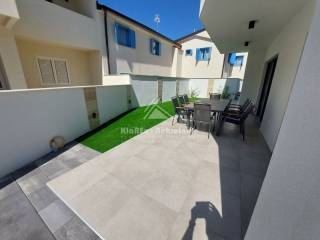 In Srima, about 300 meters from the sea, a semi-detached house with two residential units is for sale. Each residential unit consists of three floors with: three bedrooms, a living room with an adjoining kitchen and dining room, a bathroom, and on the second floor of each residential unit there is a master bedroom with its own bathroom and a terrace overlooking the sea. Each residential unit has a garden and two parking spaces. The residential unit on offer is:
