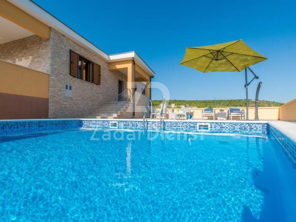 A beautiful villa with a swimming pool and an open view of the sea, total living area of ​​200 m2 in the area of ​​Maslenica.