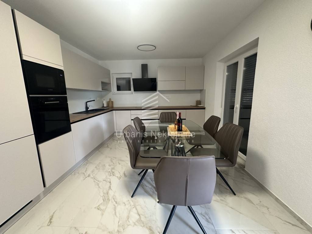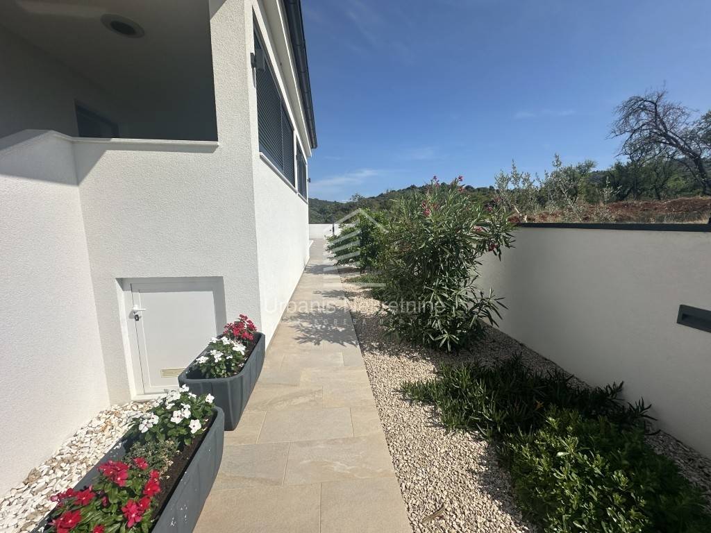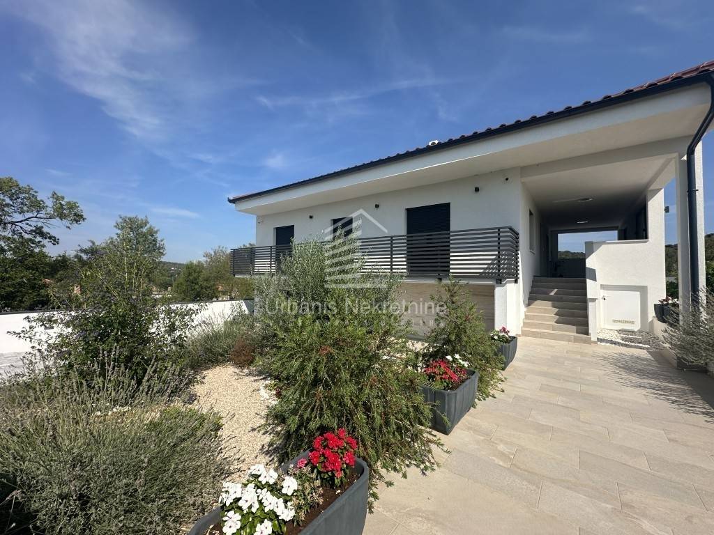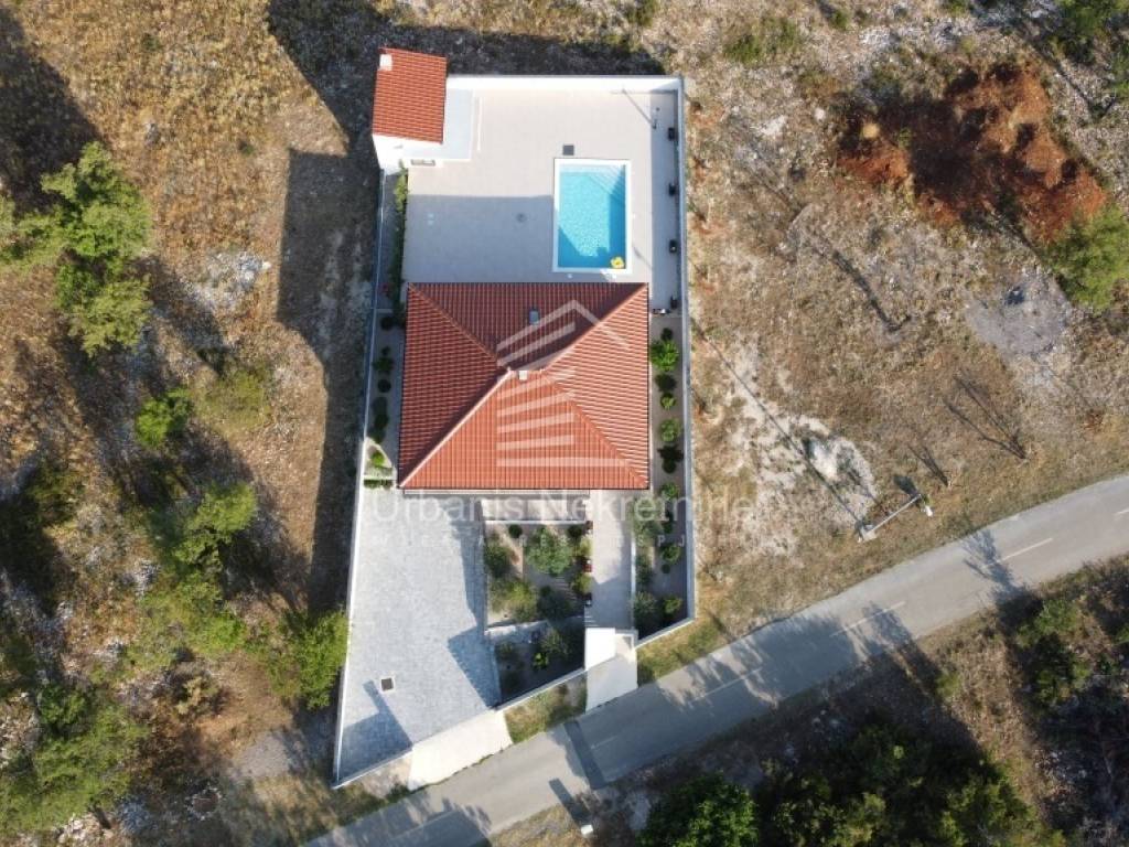 A fully furnished and equipped house with a swimming pool is for sale in a quiet village surrounded by nature, just 11 km from Biograd na Moru. The property offers 162 m² of living space and is situated on a beautifully landscaped plot of 792 m². The house is move-in ready and ideal both for year-round living or as a tourist rental.