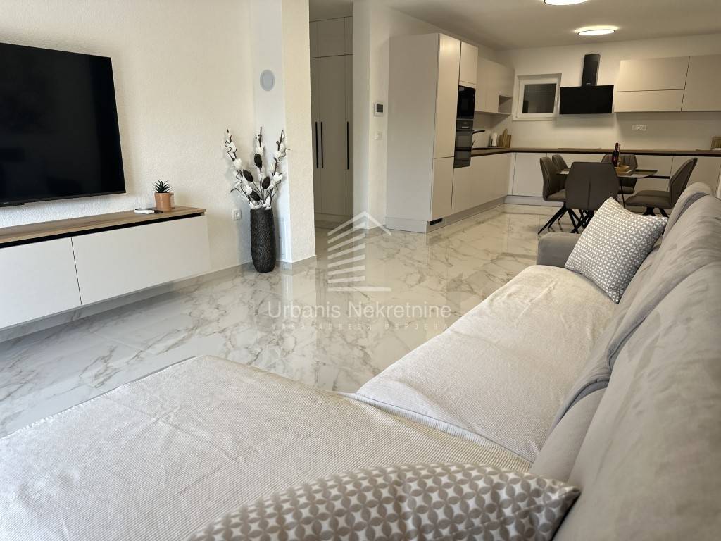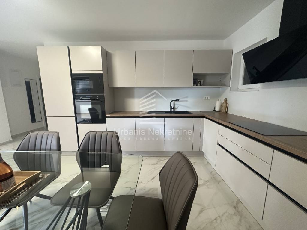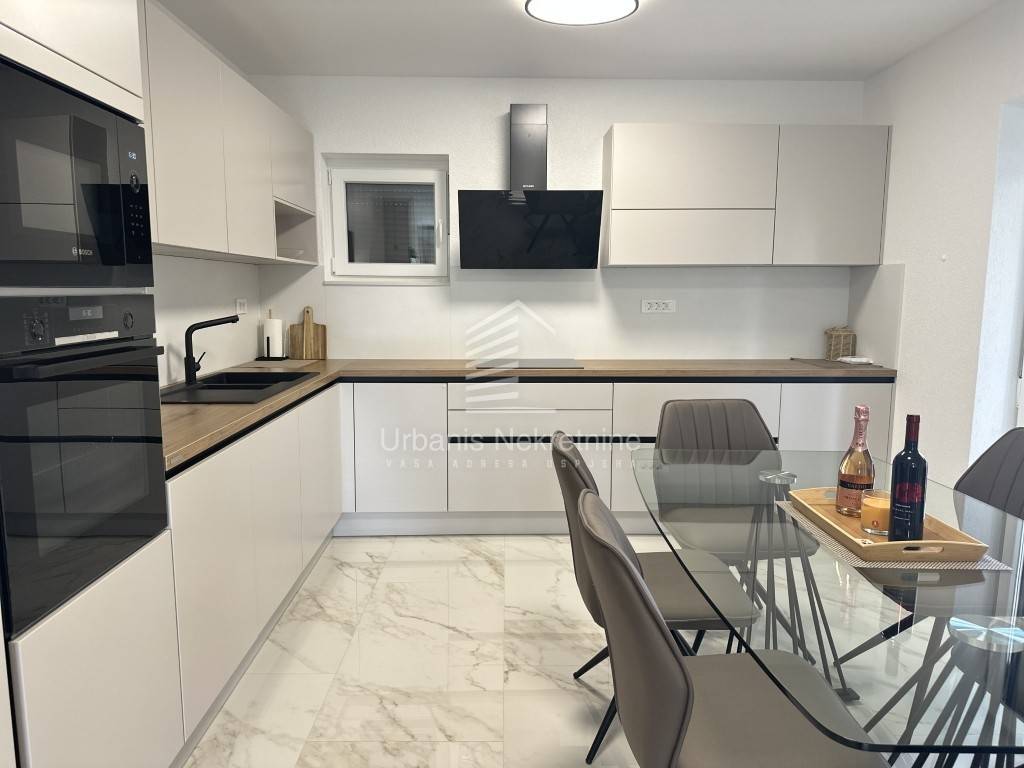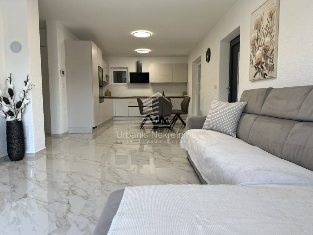 A fully furnished and equipped house with a swimming pool is for sale in a quiet village surrounded by nature, just 11 km from Biograd na Moru. The property offers 162 m² of living space and is situated on a beautifully landscaped plot of 792 m². The house is move-in ready and ideal both for year-round living or as a tourist rental.