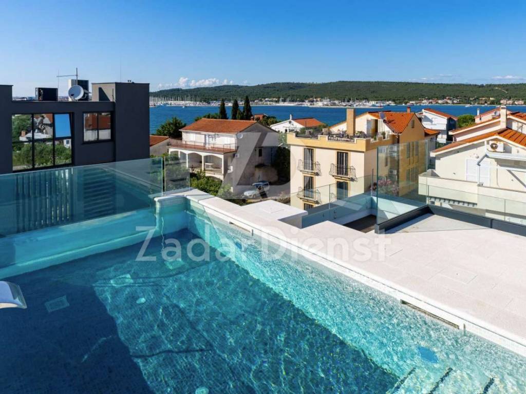 EXCLUSIVE APARTMENT IN SUKOŠAN WITH POOL AND ROOF TERRACE - SECOND ROW TO THE SEA - EXCLUSIVE OFFER - SUKOŠAN !!!