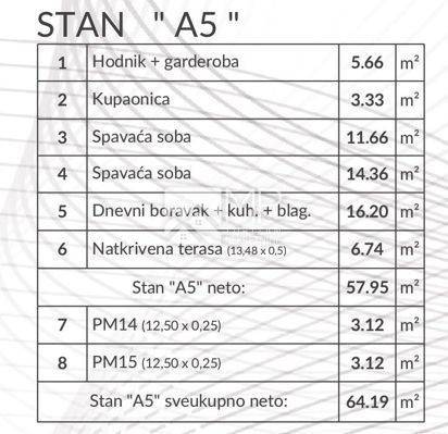 For sale is an apartment marked "A5" located on the ground floor of the building with a total area of 64.19 m2.