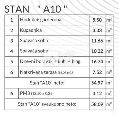 For sale is an apartment labeled "A10" located on the 1st floor of a building with a total area of ​​58.09 m2.