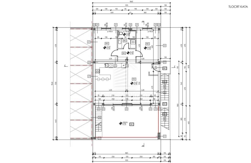 The roof above the main building is a flat, walkable reinforced concrete slab (18 cm thick).