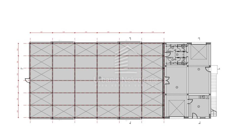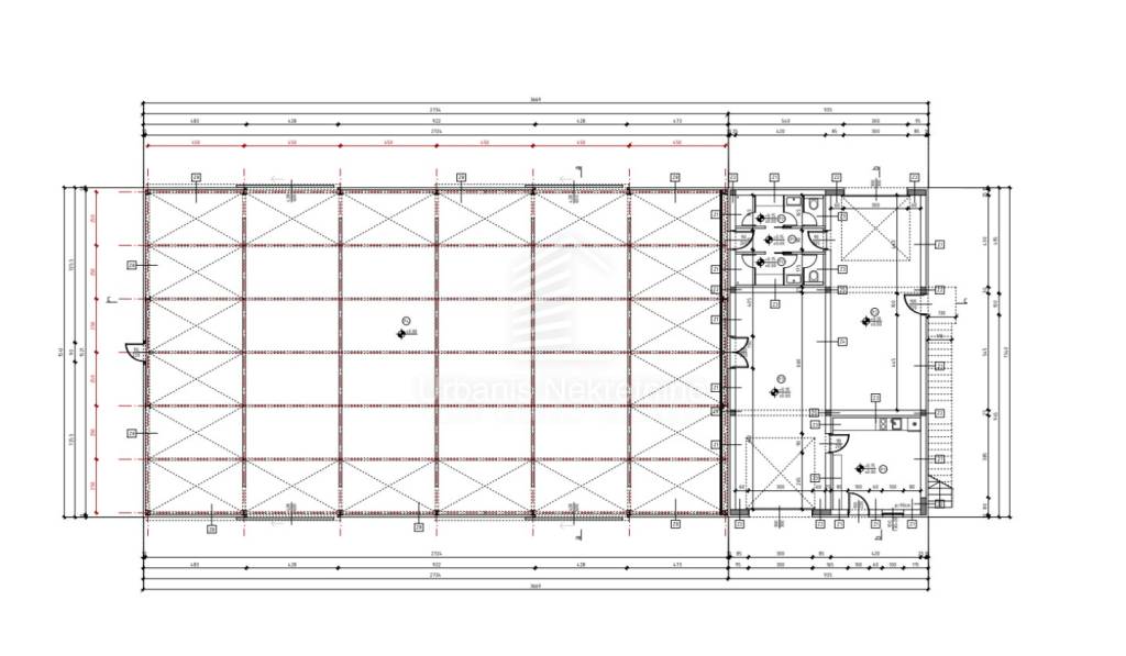 The building is composed of two structural units – the hall (8 meters high) is a single-span steel structure, while the rest of the building is masonry construction.