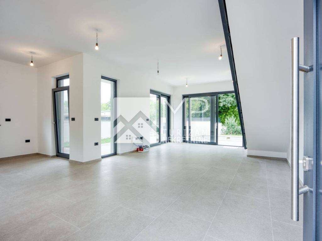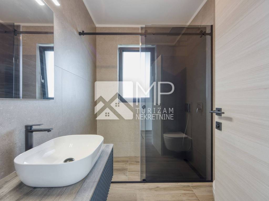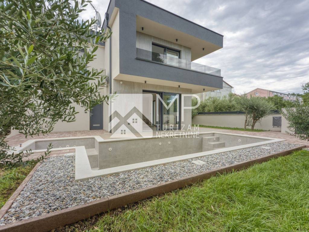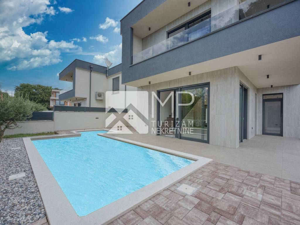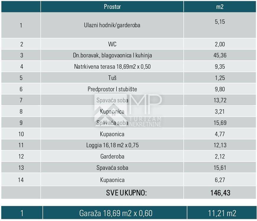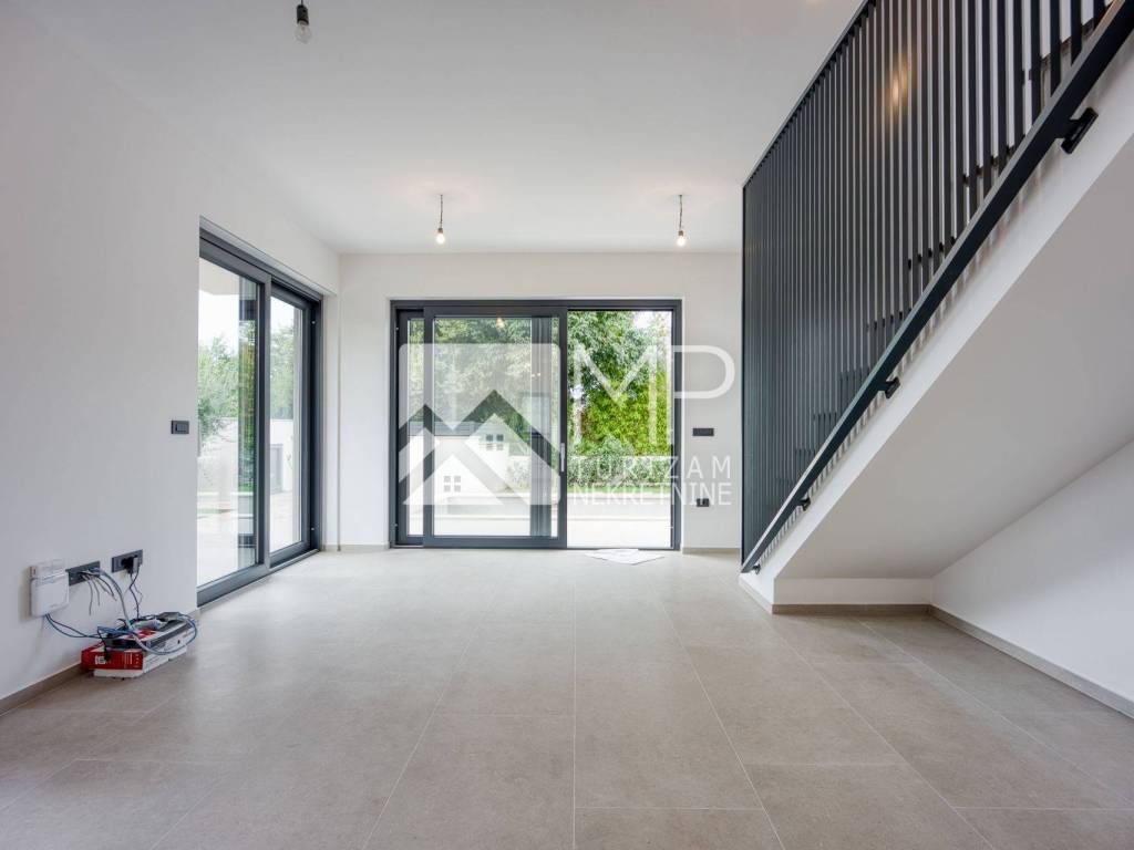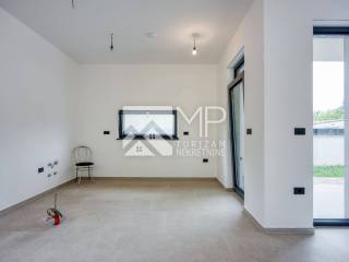 It is in Medulin, in the immediate vicinity of the center, shops and schools, that the construction of two modern duplex villas has begun, each with a total area of 146.43 m2 distributed over the ground floor and first floor. The location of the villas is excellent because they are located in a quiet location, which provides future owners with privacy and the perfect space for a comfortable life. The villas have identical floor plans, and the price shown refers to one villa. On the ground floor there is an entrance hall/wardrobe, toilet, living room + dining room + kitchen, exit to a covered terrace, shower, garage. An internal staircase leads to the first floor where there is one bedroom with a bathroom, a second bedroom with a bathroom and access to a loggia, and a third bedroom with a bathroom and a dressing room.
