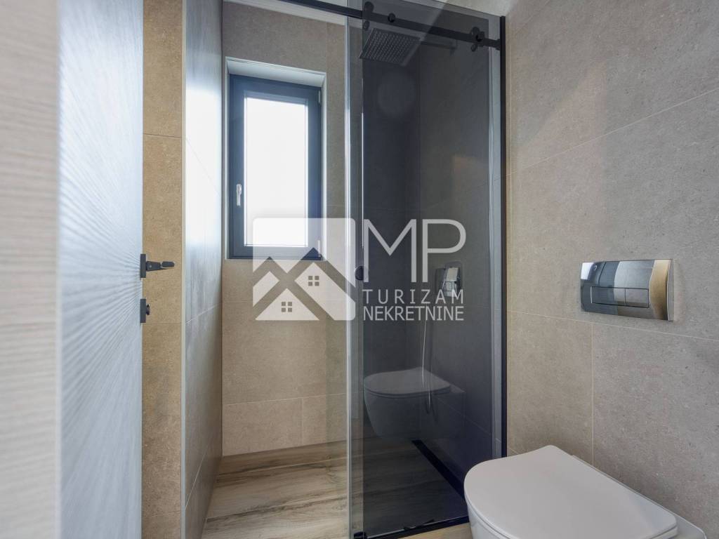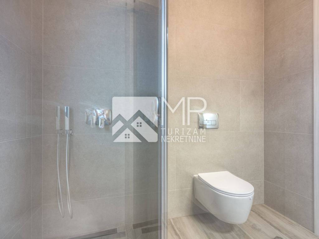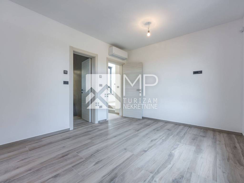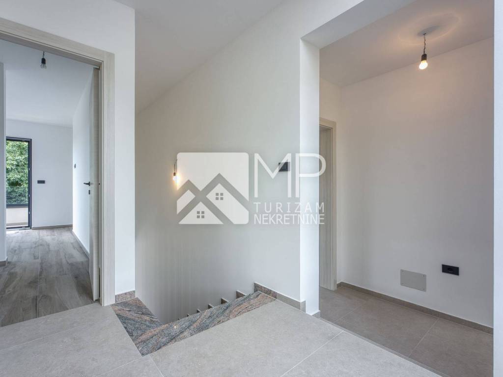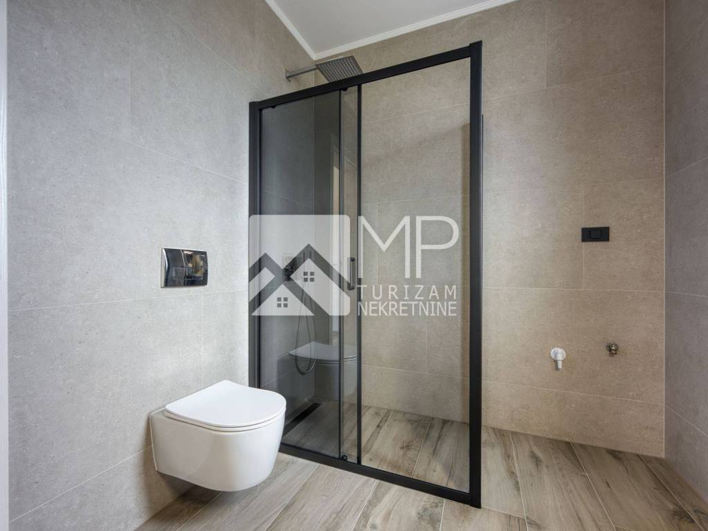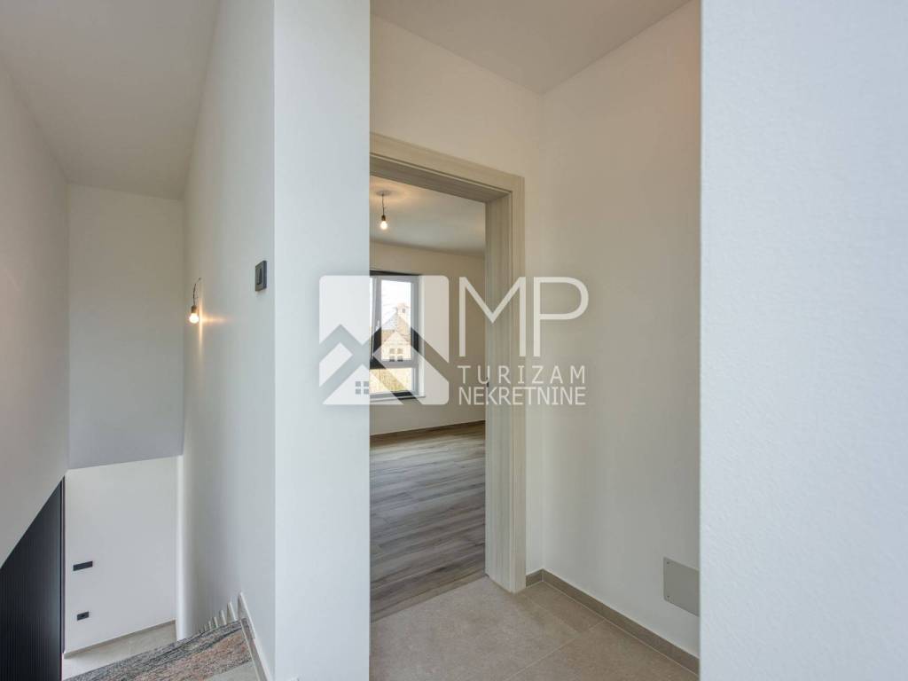 It is in Medulin, in the immediate vicinity of the center, shops and schools, that the construction of two modern duplex villas has begun, each with a total area of 146.43 m2 distributed over the ground floor and first floor. The location of the villas is excellent because they are located in a quiet location, which provides future owners with privacy and the perfect space for a comfortable life. The villas have identical floor plans, and the price shown refers to one villa. On the ground floor there is an entrance hall/wardrobe, toilet, living room + dining room + kitchen, exit to a covered terrace, shower, garage. An internal staircase leads to the first floor where there is one bedroom with a bathroom, a second bedroom with a bathroom and access to a loggia, and a third bedroom with a bathroom and a dressing room.