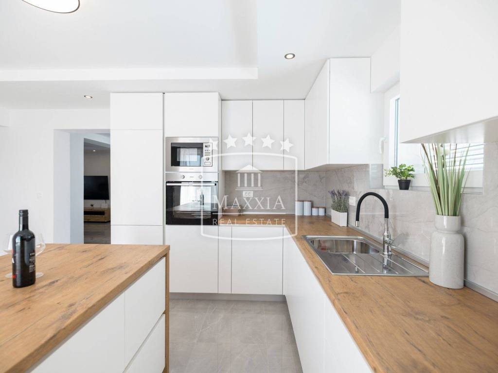 Modern and fully furnished, it is located in the immediate vicinity of all city facilities, such as the bank, post office, kindergarten, school, and much more.
