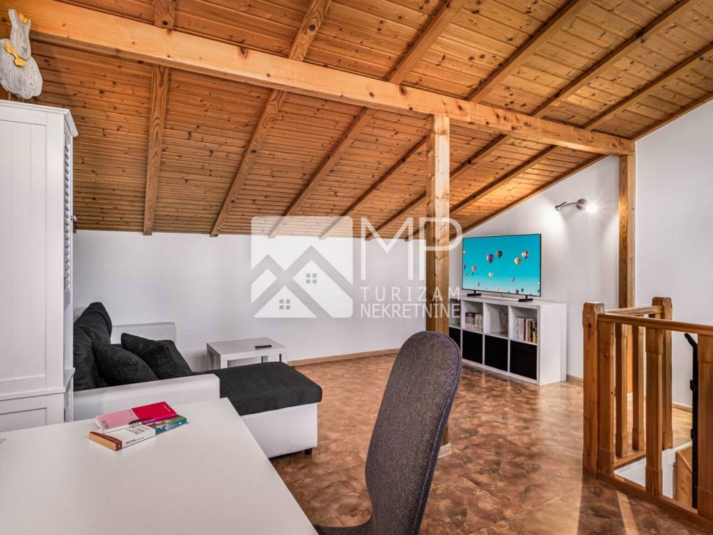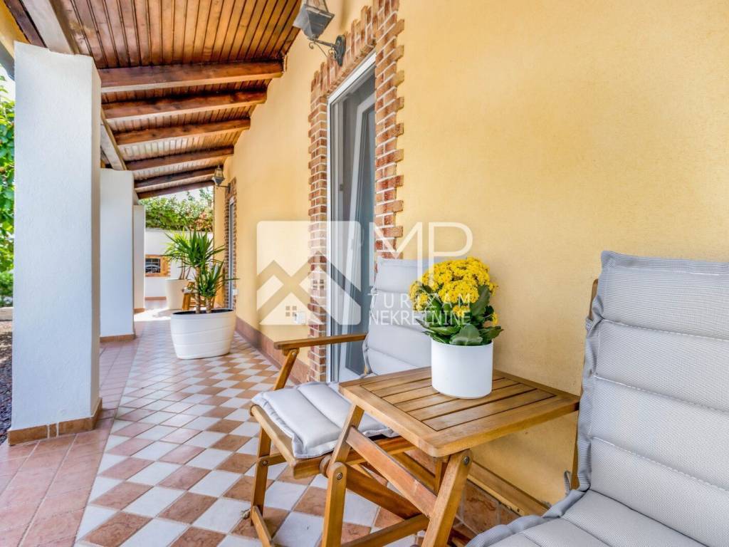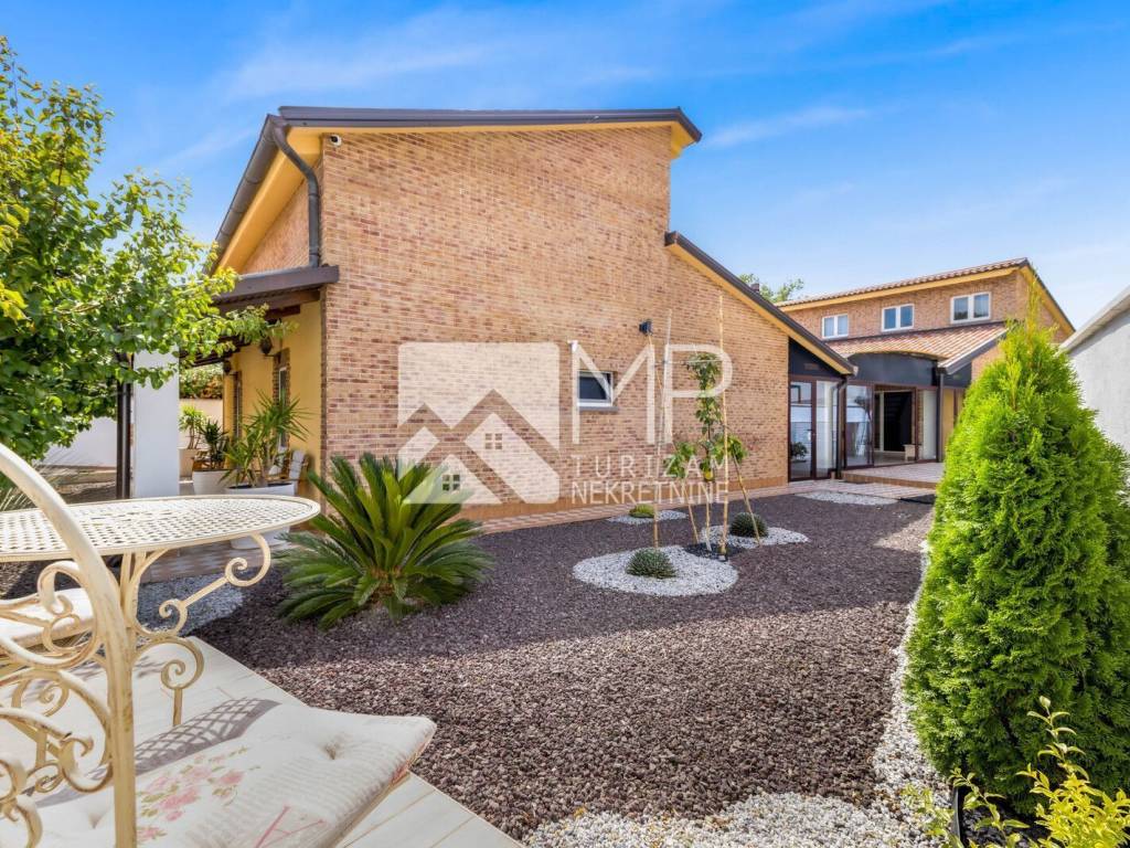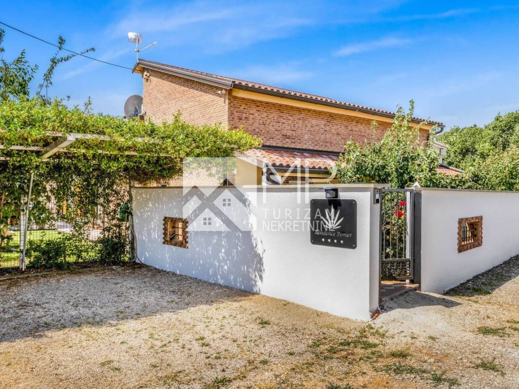 Pomer, a place in southern Istria, about 5 km southeast of Pula, in the municipality of Medulin. It is located along the coast of the deepest part of the Medulin bay, on the local road Banjole-Medulin. Right in Pomer, in a quiet part of town, we are selling a detached house with 5 apartments with a living area of ​​450 m2. The first beach is about 1.2 km away, and shops and other amenities are in the immediate vicinity. The house consists of 4 identical two-story apartments spread over the ground floor and first floor and one large apartment in the basement. All apartments are connected by a central part - a covered terrace of 100m2 with a pool table intended for socializing, with exits on two sides to a beautifully landscaped garden where there is a large summer kitchen with a barbecue. The two-story apartments are 65 m2 in size and consist of a kitchen with a dining room and a living room, two bedrooms, a bathroom and a terrace. The large apartment in the basement consists of a large living room with a fireplace and a table for 12 people, a bathroom, a kitchen and 3 bedrooms. All apartments are furnished and air-conditioned. The house has a beautifully decorated and maintained garden with Mediterranean plants, a space for socializing, a barbecue and an outdoor kitchen. Parking space is provided for 5 cars. In 2018, a new roof, facade, water and electricity installations, bathroom and new laminate were installed. The property is sold as a package and fully furnished. The apartments are categorized as 4 stars. This apartment house is an ideal opportunity for a larger family to live or for tourism, since it has been very successfully rented for many years.