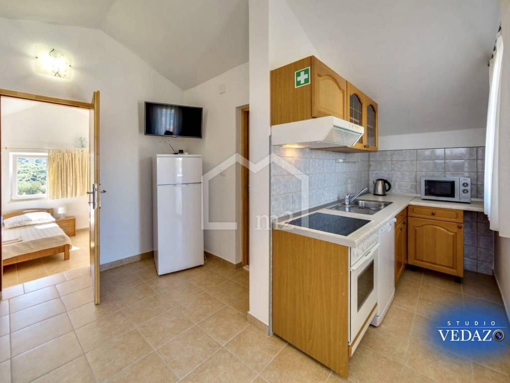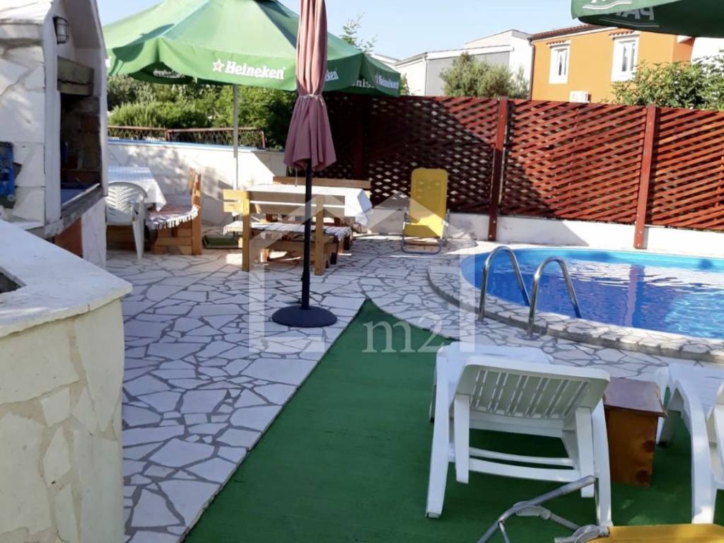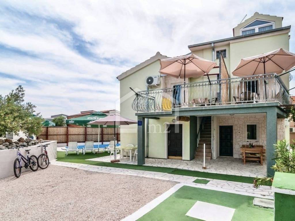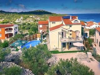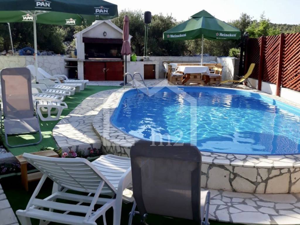 The house consists of ground floor, first floor and attic. It has 6 bedrooms, 5 kitchens with dining area, five terraces, 6 bathrooms. Parking spaces for 6 vehicles are provided, it has air conditioning and the outdoor facilities include a swimming pool, gazebo, barbecue and two outdoor showers. The house also has a water reserve tank and the owner also has a MOORING FOR A BOAT THAT GIVES A GIFT TO THE FUTURE OWNER. Great location, quiet environment, ideal property for both a family holiday home and for tourism. Ownership tidy.