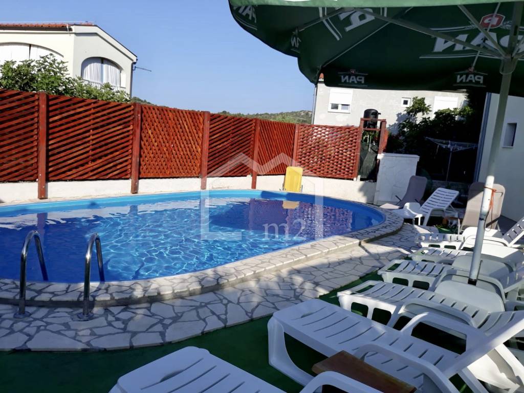 We are selling an apartment house with a beautiful sea view, swimming pool and garden. The house is fully furnished with all the facilities needed in tourism and as such is for sale. Categorized with 3 * (stars) and is located near the beach Razanj only 200 m which can be reached by asphalt road. The net living area of ​​the house is 225 m2 and the plot area is 489 m2. House has 5 apartments.