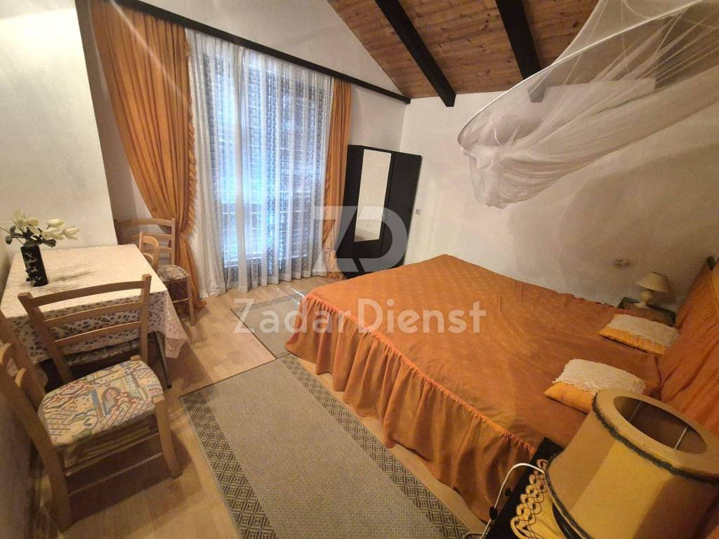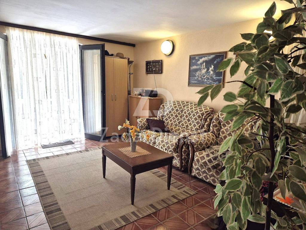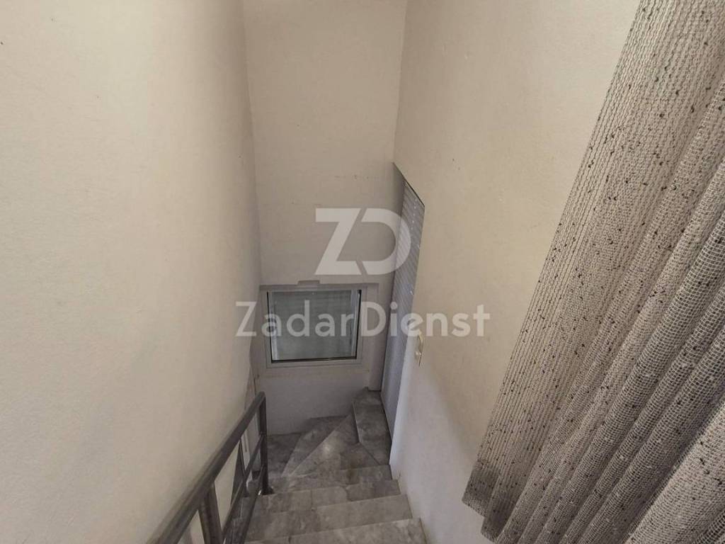 For sale is a two-storey house, second row to the sea, with a total net area of 102.52 m2 on the island of Vir. It consists of a ground floor and an upper floor. The ground floor consists of a living room with a kitchen, a bathroom, a garage and a spacious terrace. The first floor consists of a hallway, a kitchen, 3 bedrooms, a bathroom and a spacious terrace.