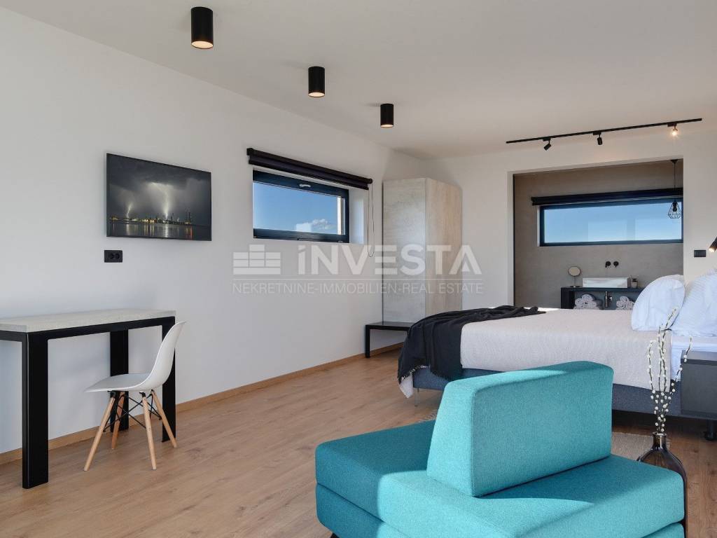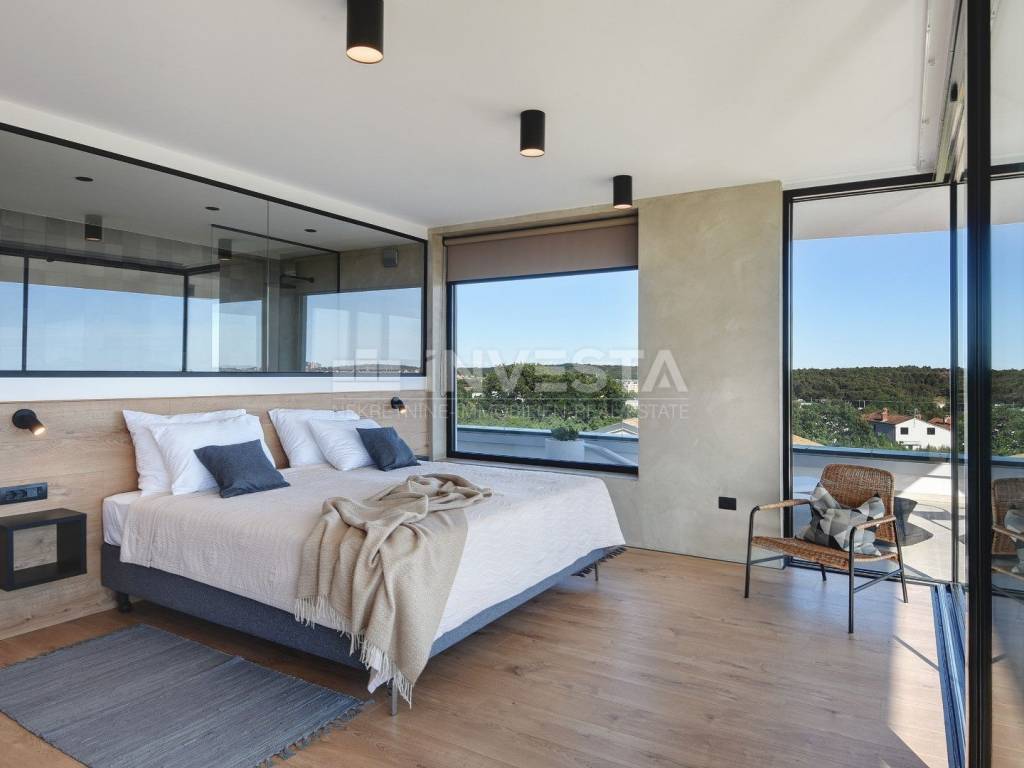 This luxury villa is unique due to its modern decor and its position, providing views of the Pula bay and the Arena.