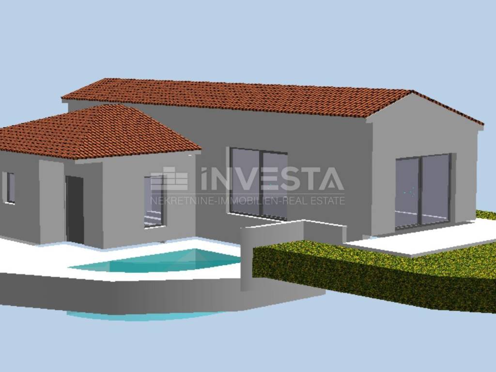 We are selling a building plot with a building permit for a house with a swimming pool in the Vodnjan area. The total land area is 482 m² plus a share in the access road. The building plot is designated for the construction of a single-family house with a gross floor area of 120 m² with a swimming pool. The house is planned as a single-story building. A main architectural project has been prepared, the procedure for determining special conditions and connection requirements has been completed, and a building permit has been issued. Please note that the current price includes value-added tax (VAT). The project and building permit can be amended later according to the needs of the new owners.
