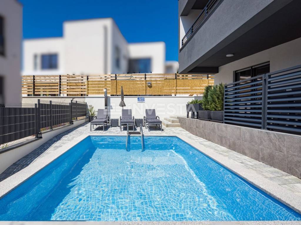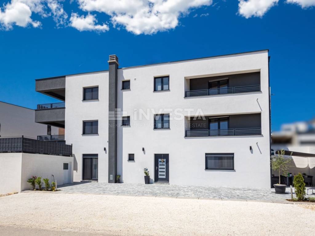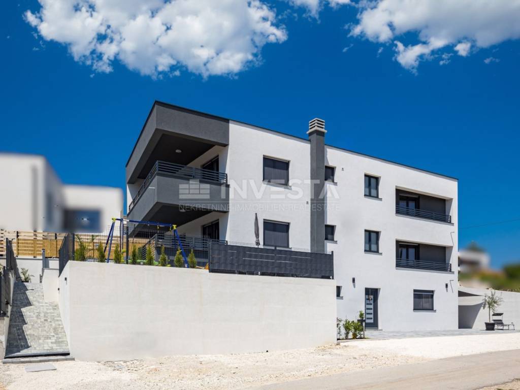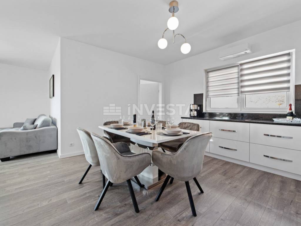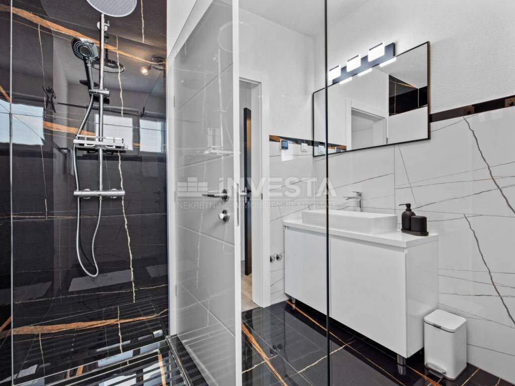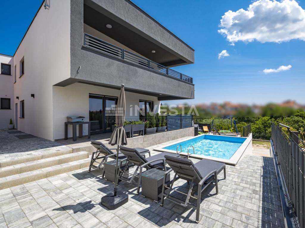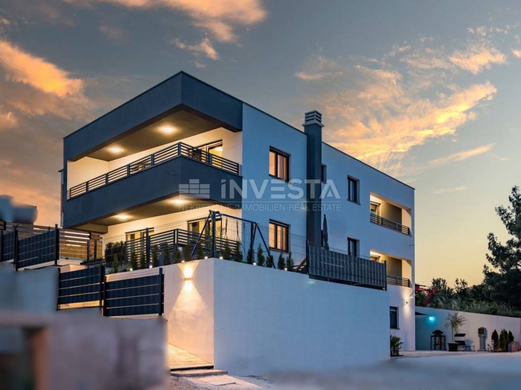 In the attractive area of Medulin, just 150 meters from the sea, this beautiful luxury villa offers the perfect blend of modern design and Mediterranean lifestyle. The villa, with a total area of 360 m², spans three floors, with a spacious yard of 411 m², offering all the amenities needed for a high-quality life, relaxation, and enjoyment.