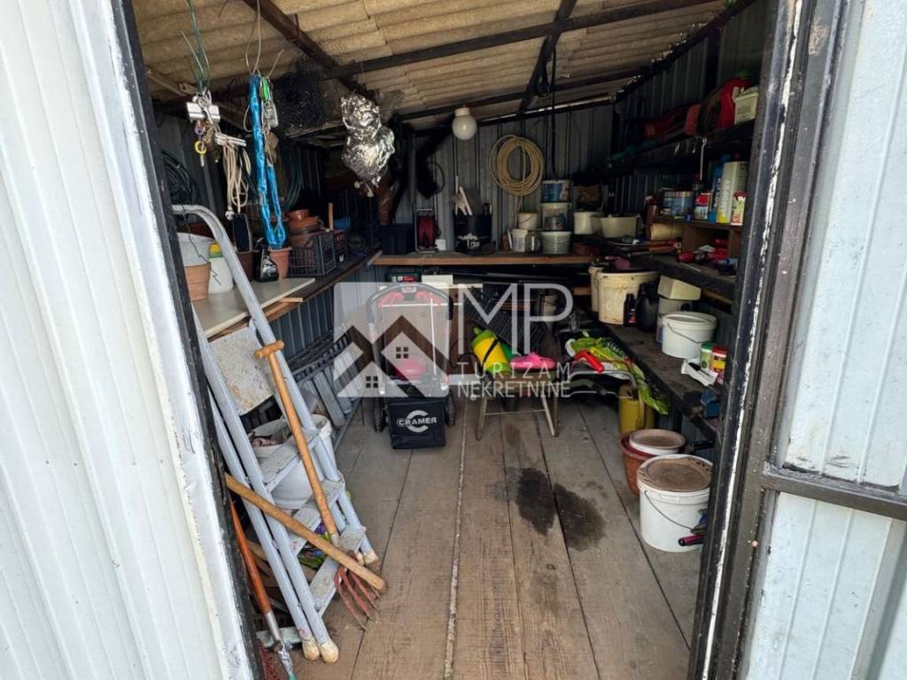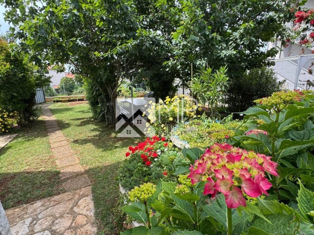 It is located on a large, beautifully maintained garden with many fruit trees - cherries, figs, pomegranates, lemons, tangerines, and is surrounded by family houses, with parking inside and outside the yard. The garden has two more terraces with seating areas, a wooden house that serves as a tool shed, and many more decorated details and flowers. Due to the size of the land, the future buyer has the option of building a swimming pool and accompanying facilities.