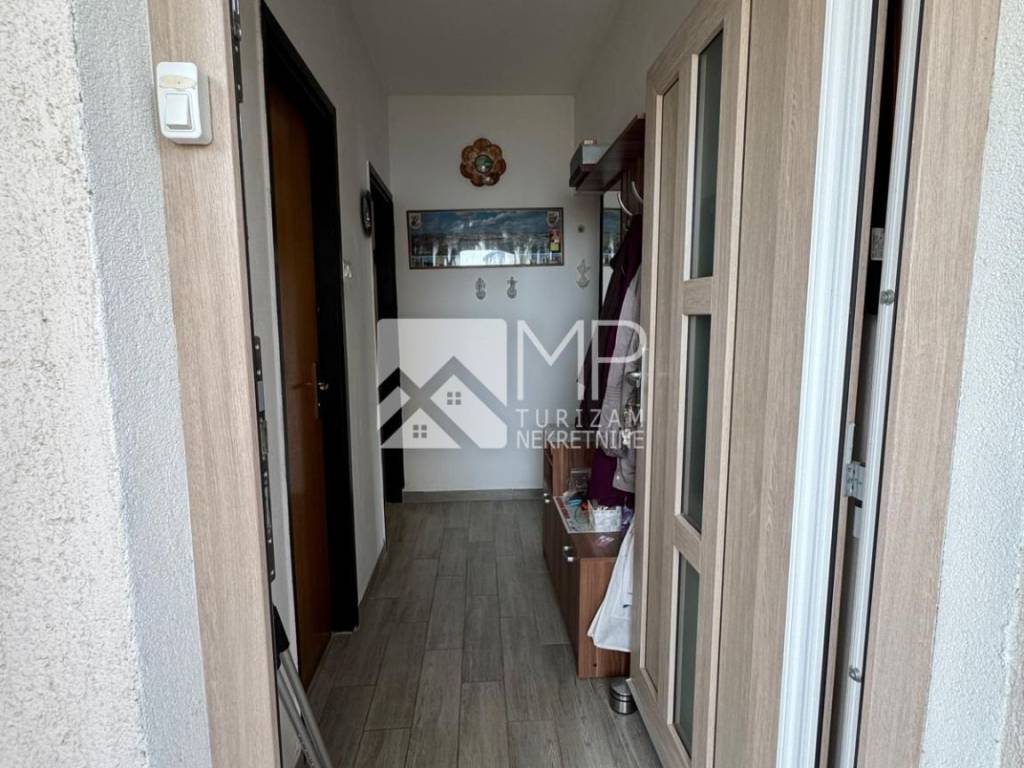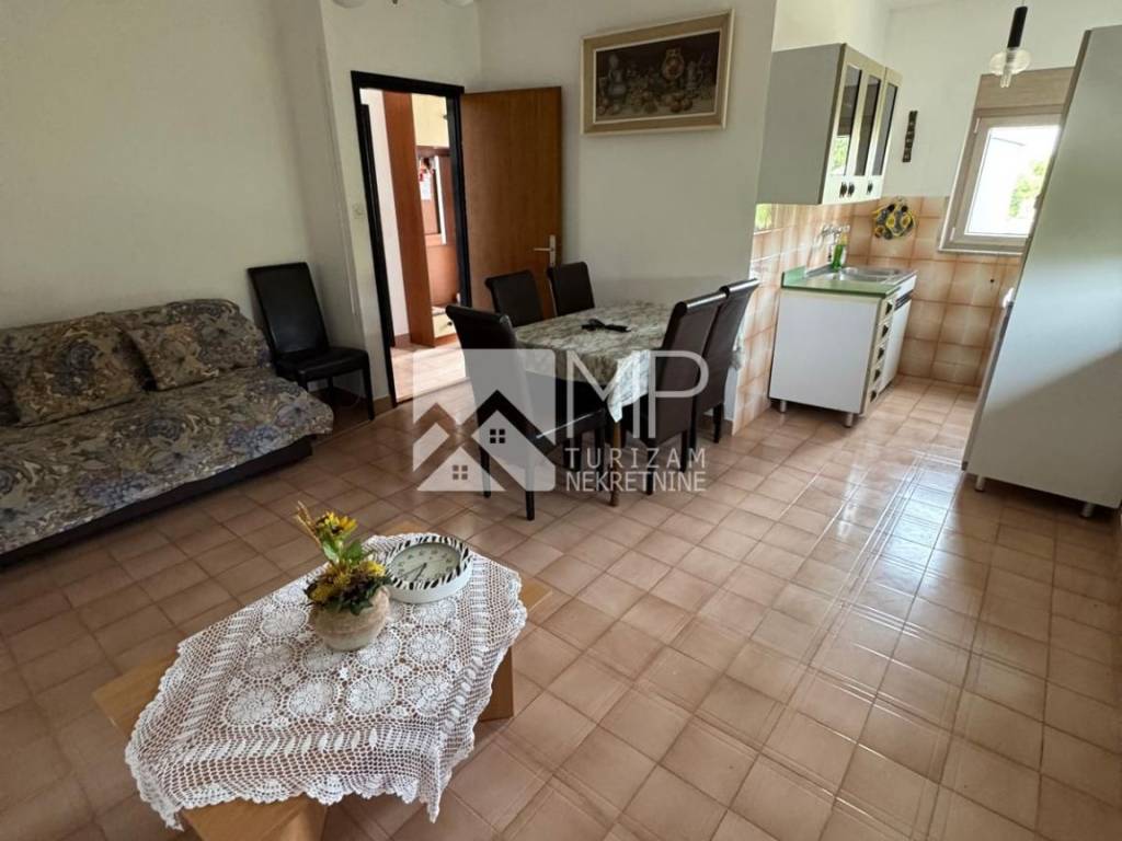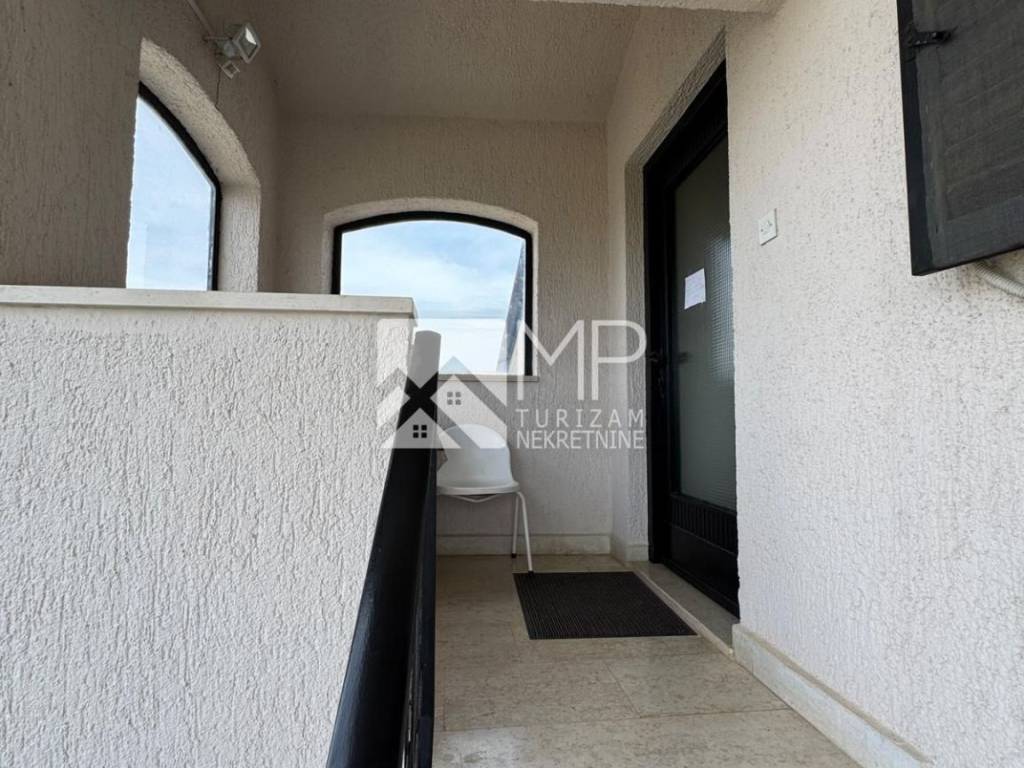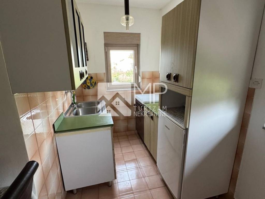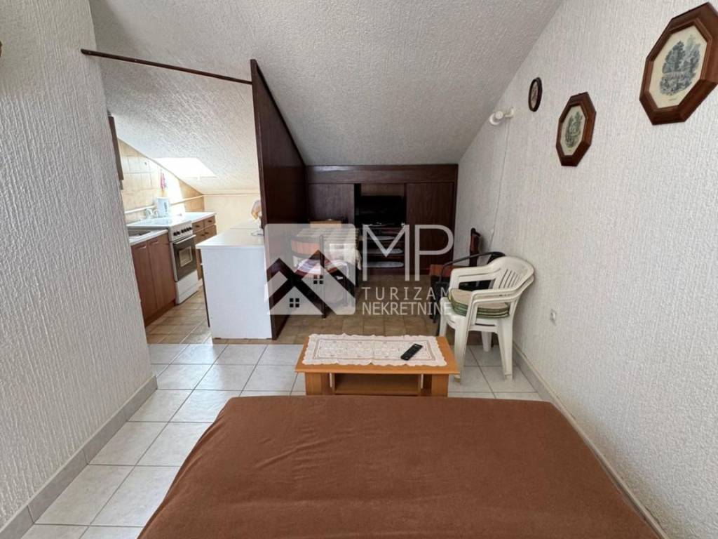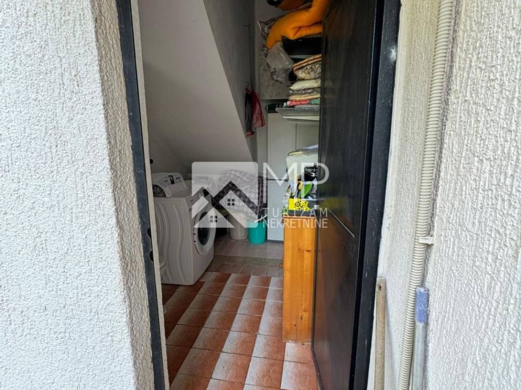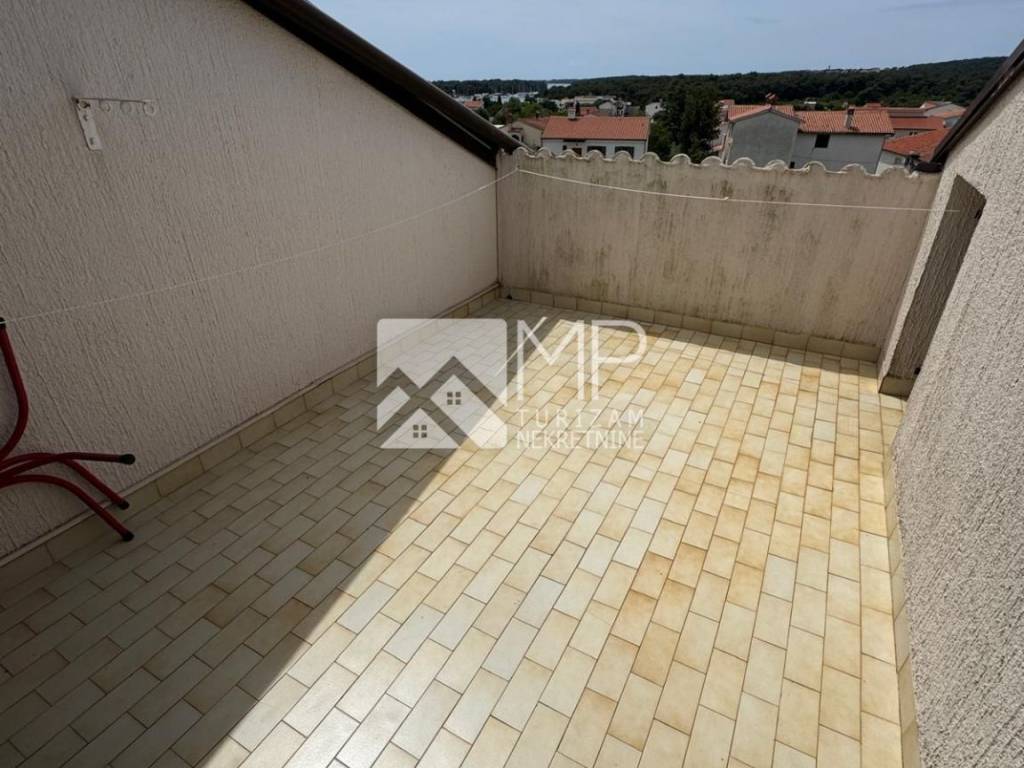 In the attic there is an apartment of 55m2 consisting of a hallway, bathroom, one bedroom, kitchen with living room with access to an open roof terrace with a partial view of the sea and Premantura in the distance.