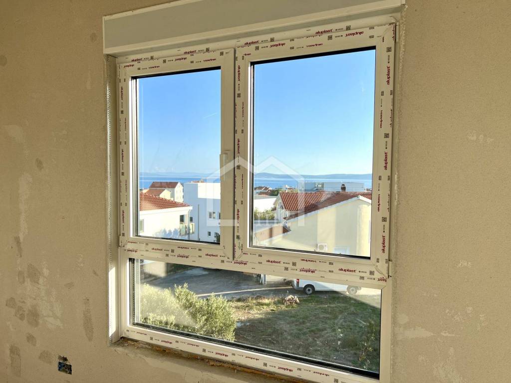 We are selling a two-bedroom apartment in a new building in a smaller residential building on the island of Čiovo, Okrug Gornji district. It is located on the first floor of a new building, with an area of ​​63m2. It consists of two bedrooms, a living room with a kitchen and dining room, a bathroom and a spacious loggia with a beautiful view of the town and the sea.