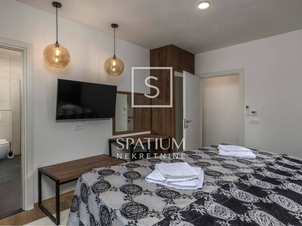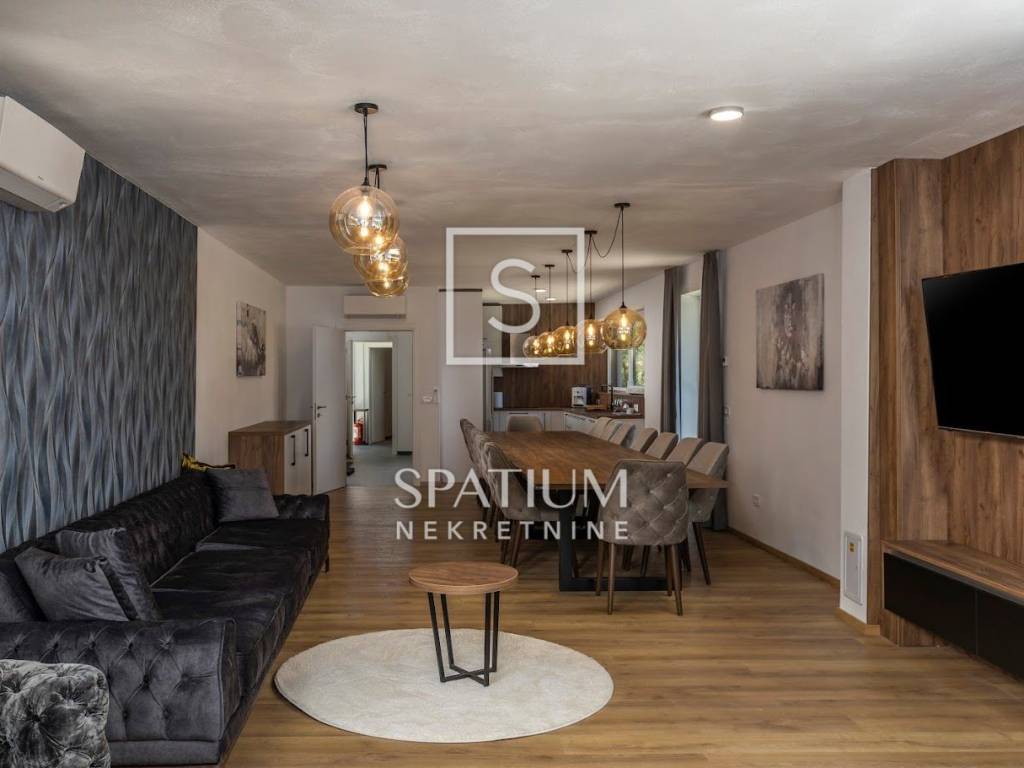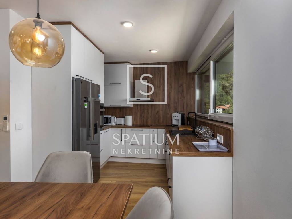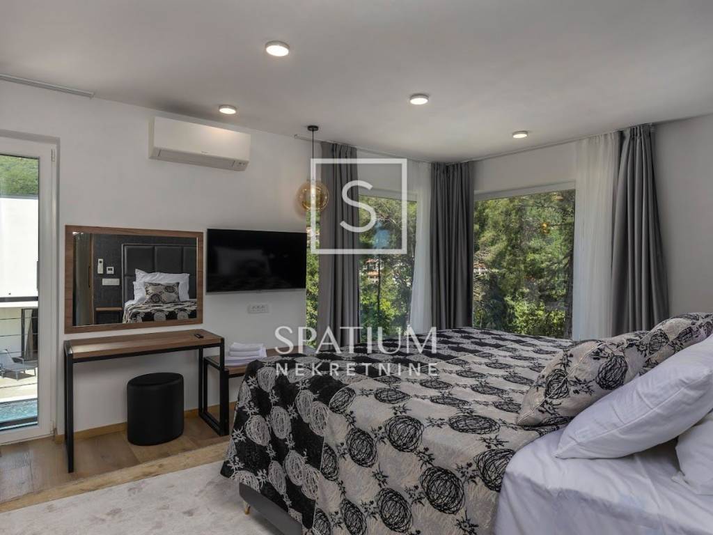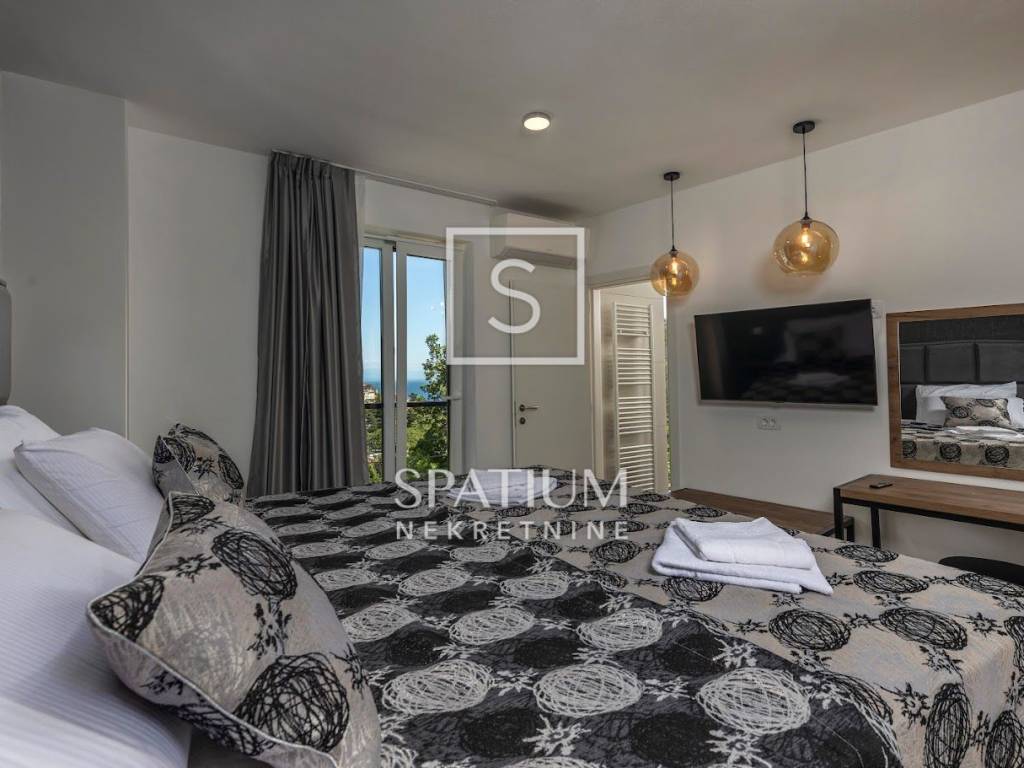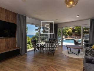 MOŠĆENIČKA DRAGA, we offer a house spread over three floors with an area of 430 m2. It is completely connected by an internal staircase and is suitable both for living and for tourist rental. It consists of 6 bedrooms, each of which has its own bathroom, another additional bathroom, toilet, living room with kitchen and dining room, and a study. The bedrooms offer a beautiful view of the sea. The property also has a wellness room with sauna, jacuzzi and sunbeds. From the living room you can reach the garden where there is a swimming pool. The house has a parking lot secured by a fence. Underfloor heating with a heat pump, cameras, alarm and automatic watering of the garden are just some of the benefits that this property provides. Construction is in 2022 and everything is new. The sea is 450 m from the house, and it will take you less than 5 minutes to walk to the first beach. Moščenička Draga, a small fishing village located below the hill on which the medieval town of Mošćenica is located, after which the place itself got its name from the draga's contact with the sea. For all other information, please contact us with confidence. Rok Lulić mediation assistant + 385 91 2206 204 rok@spatium.hr Spatium nekretnine + 385 51 272 903 info@spatium.hr
