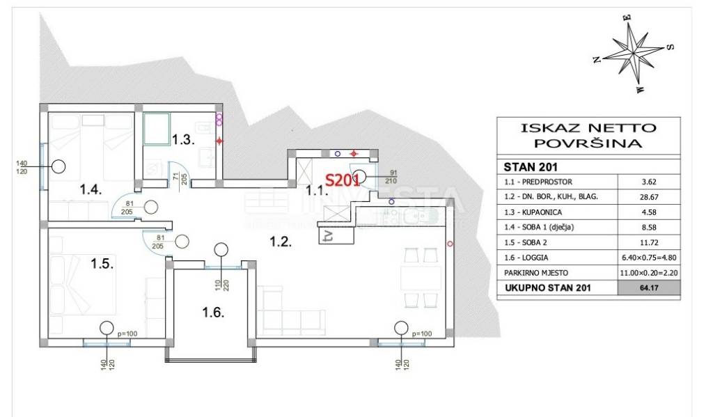 A modern apartment of 63.59 m² is for sale on the second floor of a newer building in Peroj.