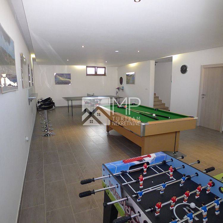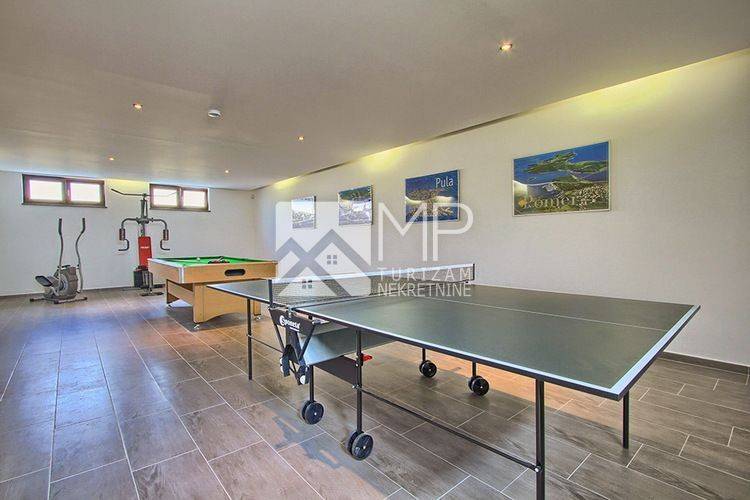 In the basement there is a large leisure area with billiards, fitness equipment and table tennis and a boiler room.