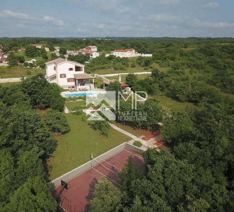 In the small village of Štokovci in central Istria, a holiday home with a swimming pool is for sale, located on a fenced plot of land measuring 2000 m2.