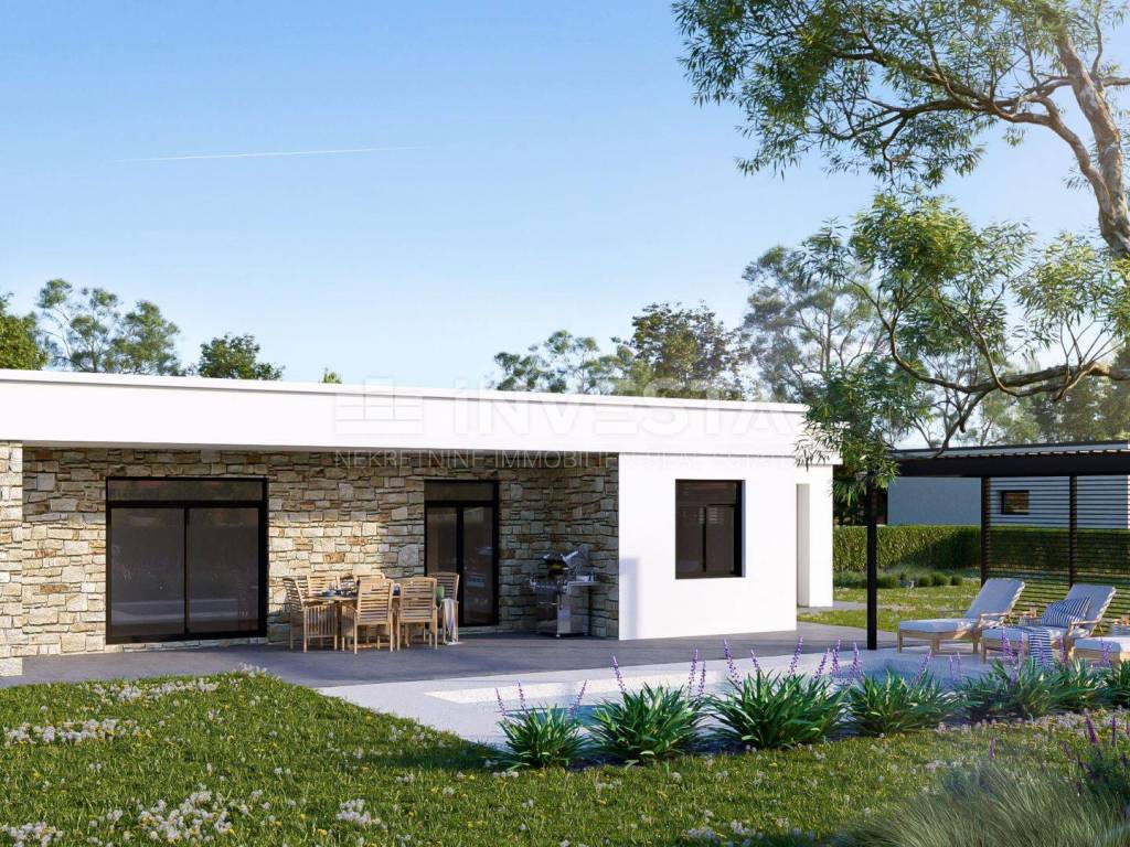 In the vicinity of Poreč, just 4 km from the sea, two modern single-story villas are in the final stages of construction. Each villa has an area of 100 m² with a plot of 475 m² for each unit.