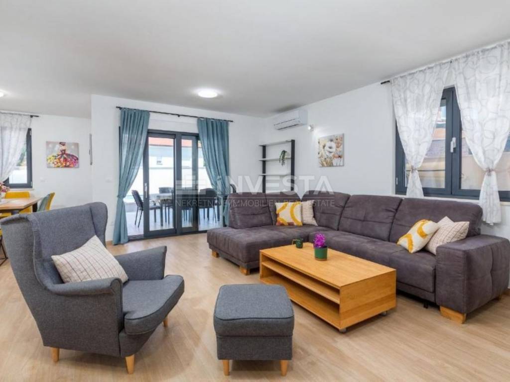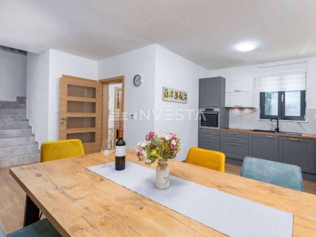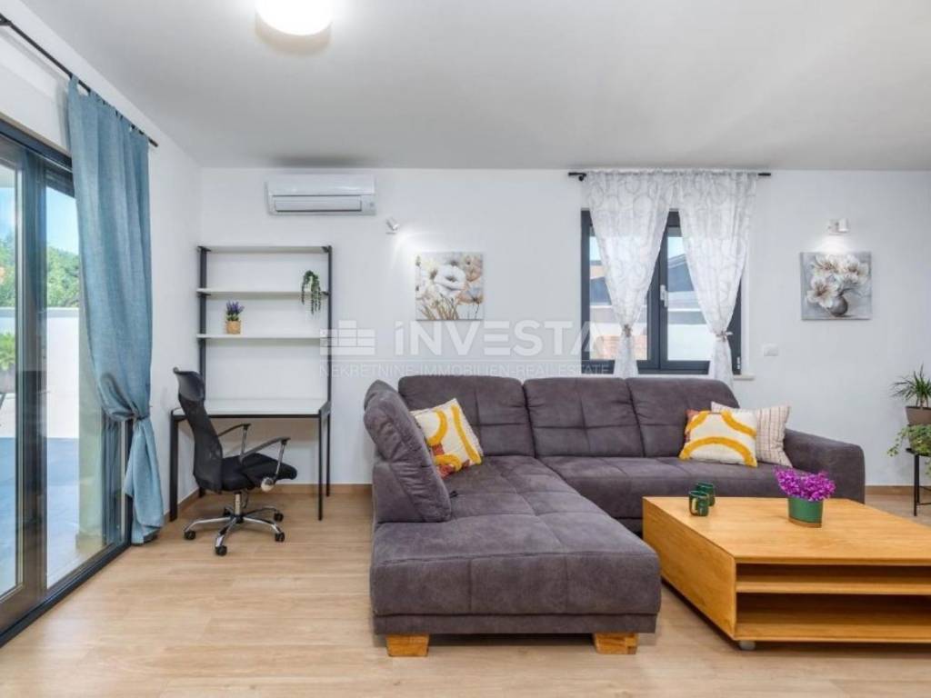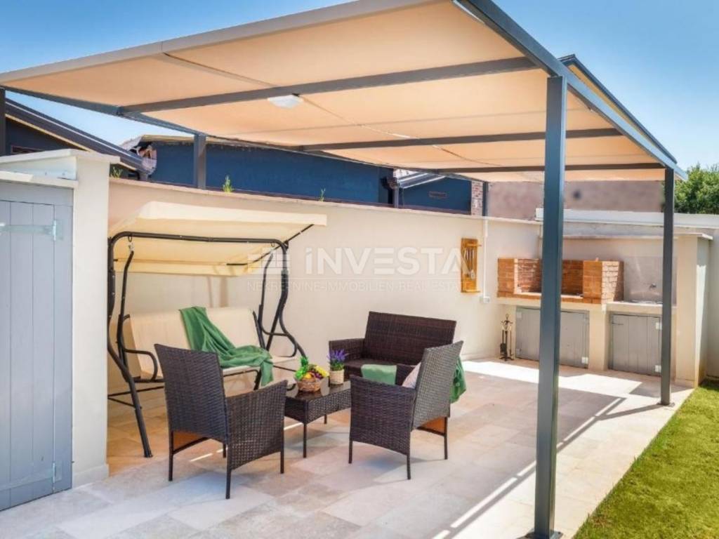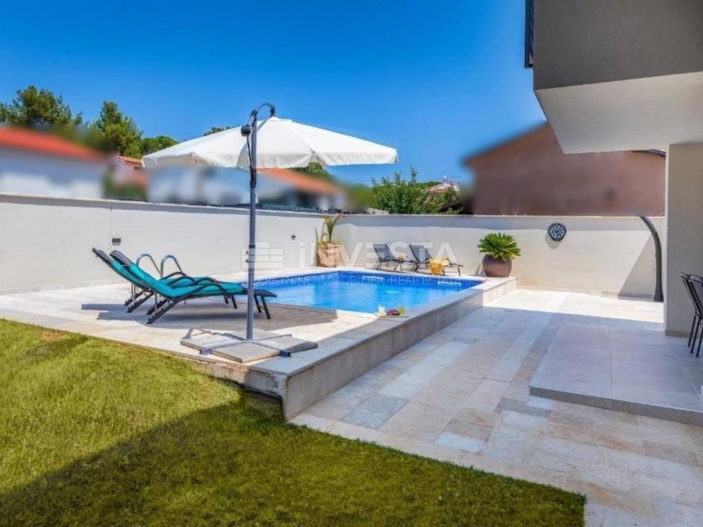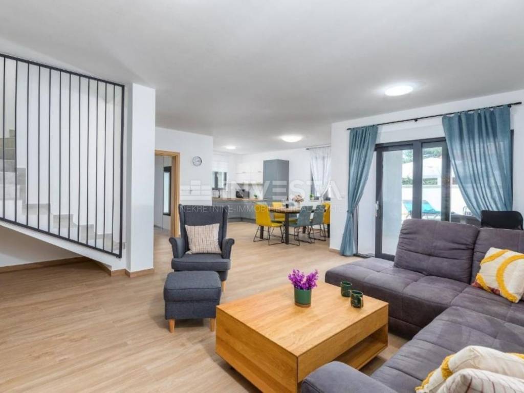 In the quiet part of Medulin municipality, this modern new build offers top-notch amenities, just 500 m from the sea and 700 m from a maintained beach. It is a semi-detached contemporary house with 3 bedrooms, a pool, a summer kitchen, landscaped garden, and full comfort for family living or tourist rental.