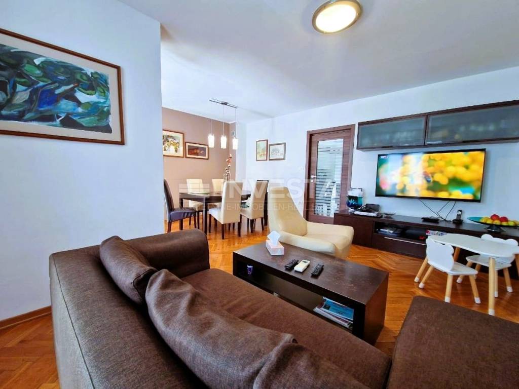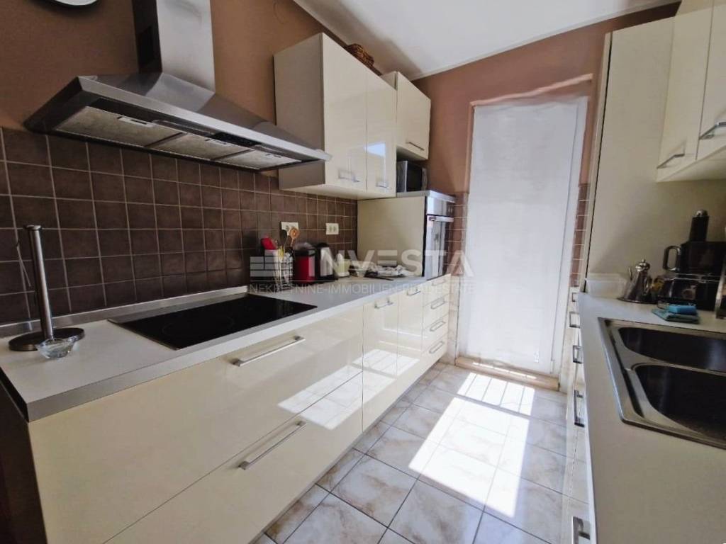 Furnished apartment for sale near the sea in Fažana. Located in one of the best areas in Fažana, just a few minutes’ walk from the beach and the lively town center and promenade. The apartment is spread over two floors. The first floor features a spacious hallway, two large and bright bedrooms, a bathroom with a shower, washing machine and dryer, a kitchen with a dining area, and a living room with access to the balcony. On the second floor, there is an ironing area, a large bedroom with built-in low wardrobes, and another bathroom. Cooling and heating are provided by 4 air conditioning units. This apartment is situated in a highly sought-after and rarely available location, ideal for family living.