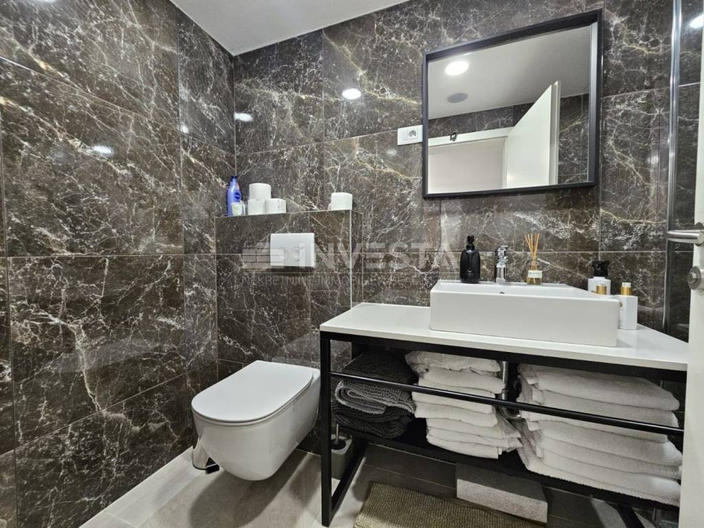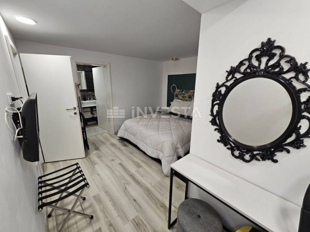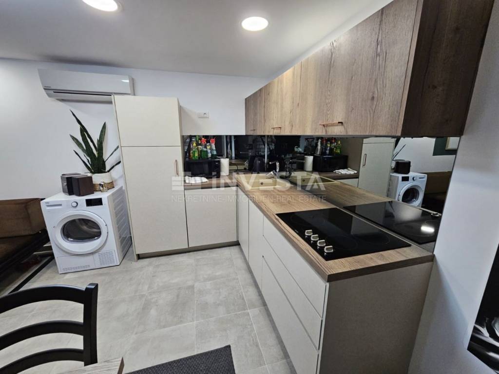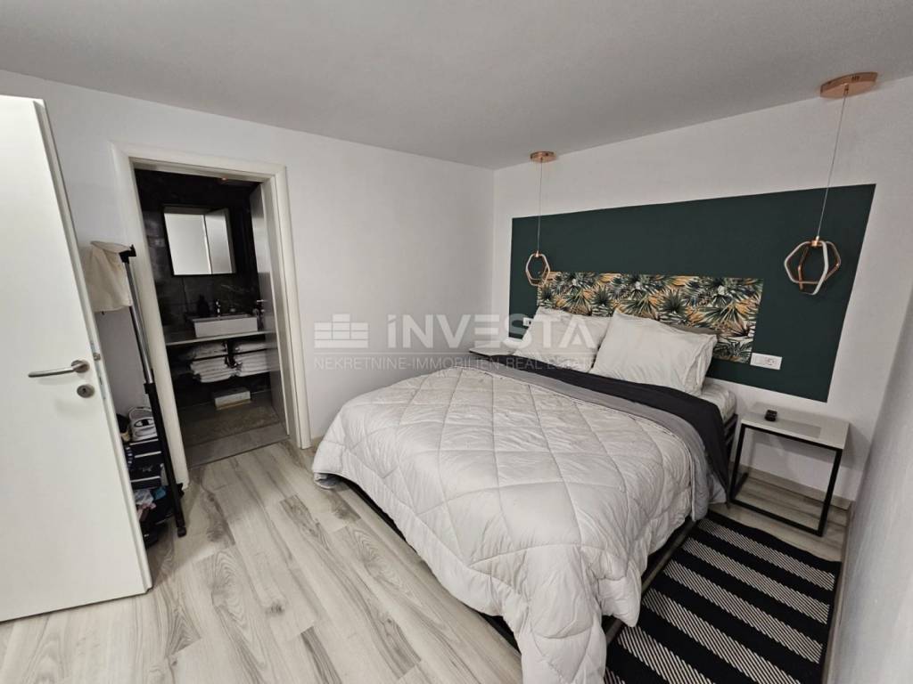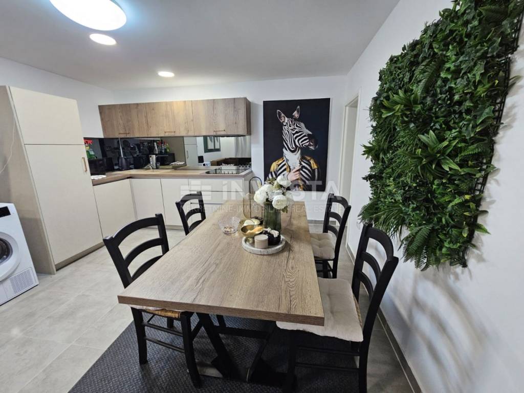 In an attractive location in Fažana, a popular tourist destination opposite the Brijuni National Park, an elegant and fully renovated apartment is for sale, situated in a slightly below-ground level of a neat residential building. The property is just 400 meters from the sea and the town center, located in a quiet street suitable for living and relaxation.