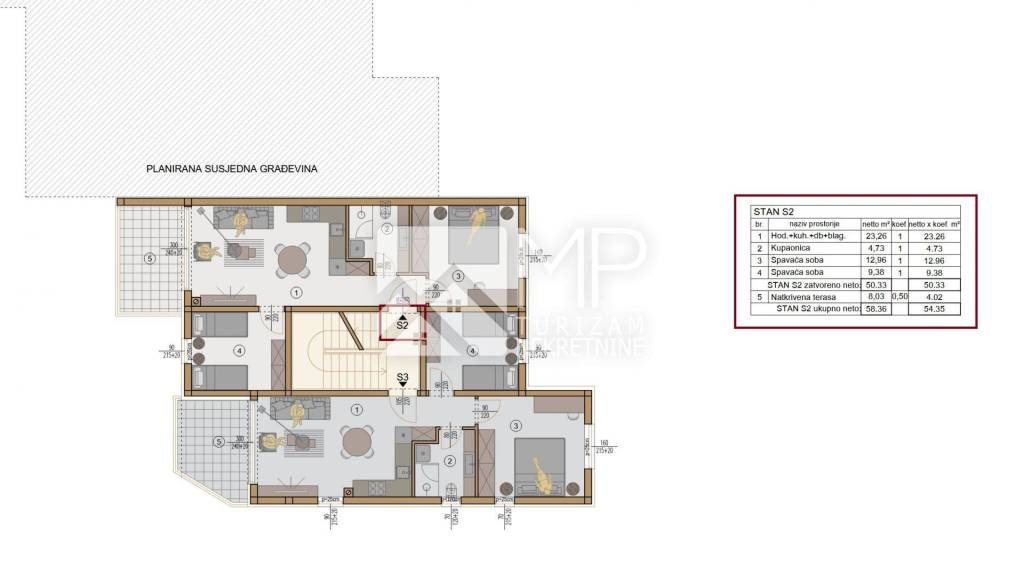 Pula, Valdebek - apartment S2 - two-bedroom apartment with covered terrace