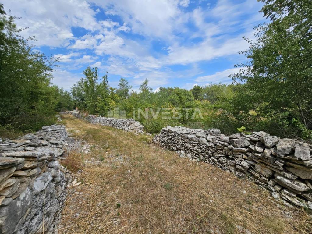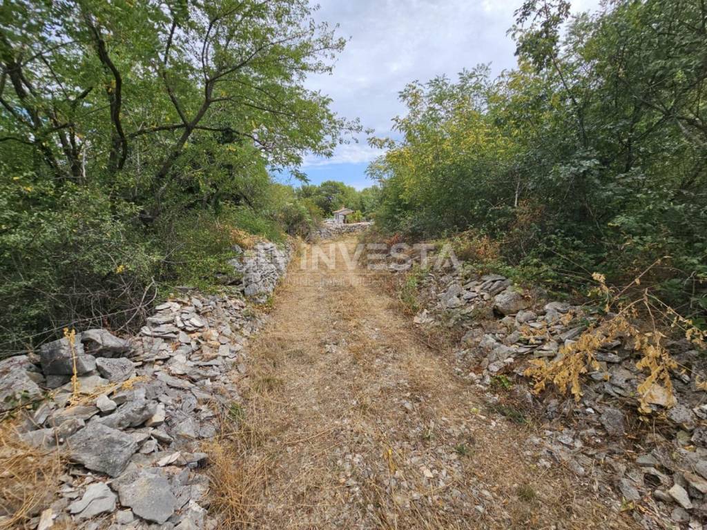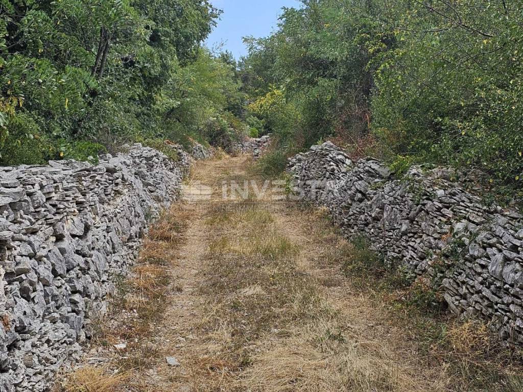 The parcel is enclosed by a traditional dry‑stone wall and has a proper access road, which is a great advantage for the future owner.