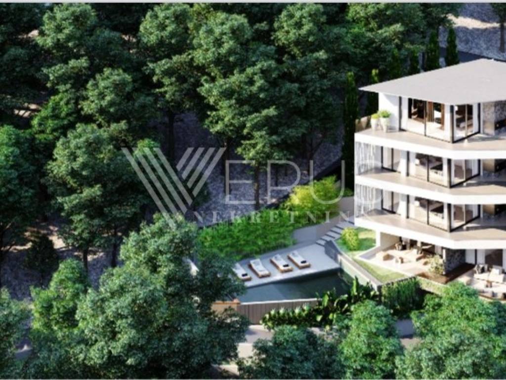We offer a unique opportunity to buy a luxurious apartment in a modern, architecturally impressive building that perfectly combines the timeless elegance of Opatija and the modern way of life. Located in a quiet and green part of Opatija, only 200 meters as the crow flies from the center and 450 meters from the sea, this exclusive new building with a total of five luxury apartments represents a combination of top-quality construction, thoughtful design, and maximum comfort.