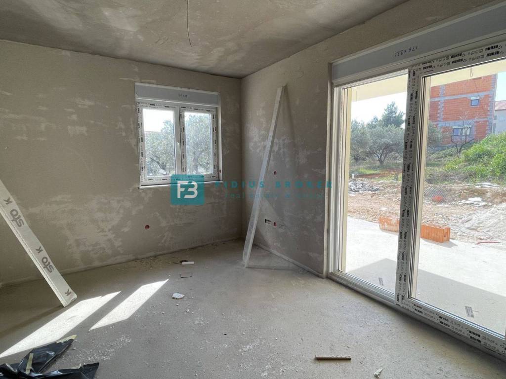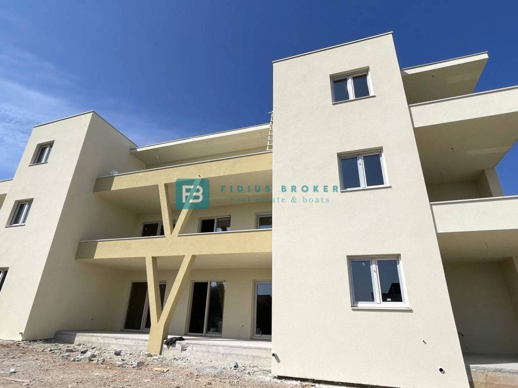 The construction of a new residential building with a total of 9 apartments has begun. The modern-looking residential building will consist of three floors: ground floor + 1st floor + 2nd floor. The building is being built with quality materials according to the latest construction standards. Among the equipment we highlight: thermal facade, security entrance door, PVC joinery, electric roller shutters and mosquito nets, electric underfloor heating in the living room and bathrooms, modern bathroom fixtures, high-quality ceramic floor coverings, quality laminate in the bedrooms, inverter air conditioners in the living room and bedrooms, TV/SAT connection in the living room and bedrooms, glass railings on the terraces, car charger connection in the storage room. The apartments on the ground floor have a corresponding part of the garden, while the apartments on the 1st and 2nd floors have a beautiful view of the sea, the city and the islands. The building has a connection to the city sewerage and an asphalted access road. The planned completion date and move-in date is spring 2026.