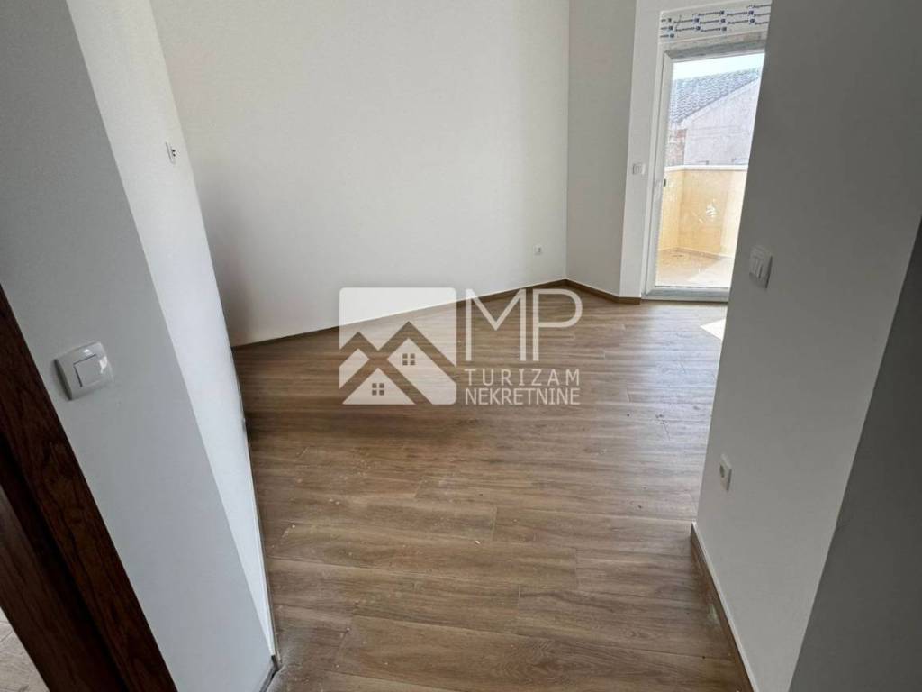In a prime location in Medulin, just a few minutes from the center, beautiful promenade, shops, restaurants and other amenities, we are selling an apartment on the first floor in a smaller residential building with two residential units. The apartment is 54m2 in size and consists of an entrance hall, two bedrooms, living room with kitchen and dining room, bathroom and terrace with partial sea view. The apartment has a covered parking space and a storage room located on the ground floor of the building. Due to its location, the property is an ideal opportunity for tourist purposes but also for family life. Construction is underway, and completion is planned for the middle of this year (6 months). It is being sold on a "turnkey" basis.