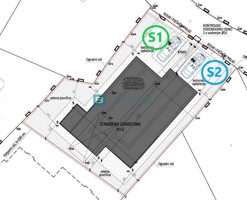 House S2 with a total usable area of ​​252 m2 + a yard of approx. 70 m2 consists of four floors: basement + ground floor + 1st floor + 2nd floor. In the basement there is a storage room and a staircase. The ground floor consists of an entrance area, hallway, staircase, bathroom, spacious living room, kitchen and dining room with access to a covered terrace of 10.10 m2. The internal staircase leads to the 1st floor where there are three bedrooms and three bathrooms (each room has its own bathroom) and one room has access to the terrace. On the 2nd floor there is a storage room, a toilet, a summer kitchen and a spacious roof terrace of 54.56 m2 with a view of the city. The house has two parking spaces.