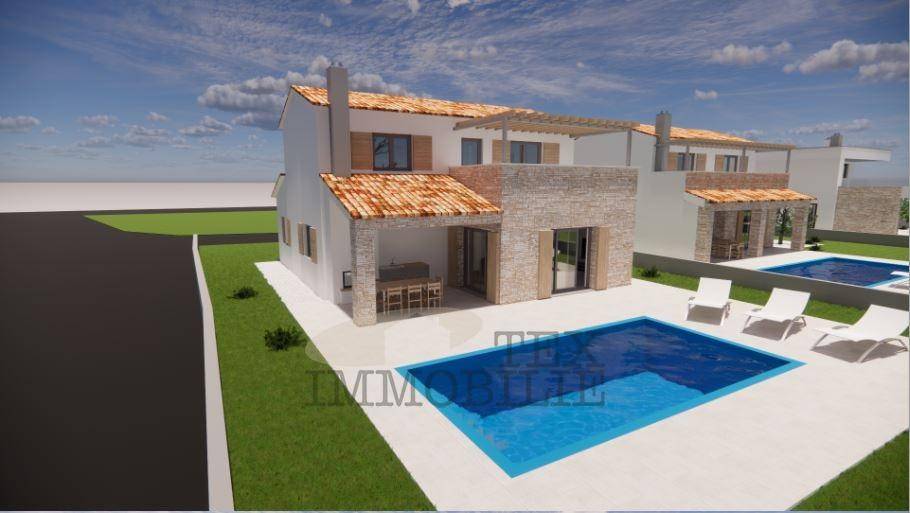 He is selling a building plot with a building permit and a paid communal contribution for the construction of a house with a swimming pool. The land is located in a small town 20 km from the center of Poreč.